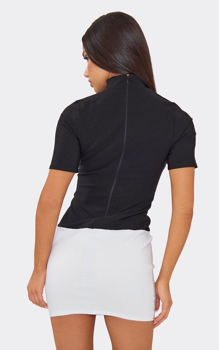 high neck short sleeve contrast hem mini dress in black
