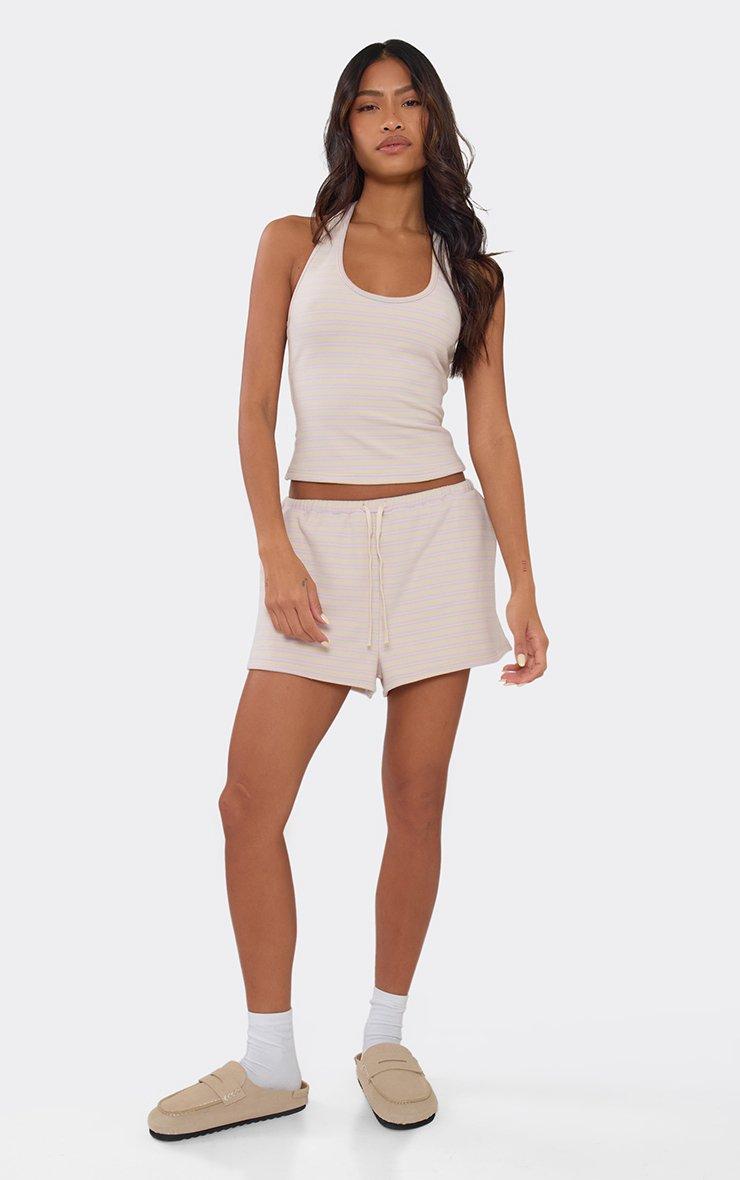 Tie Waist Mini Shorts In Pink Stripe Soft Fleece