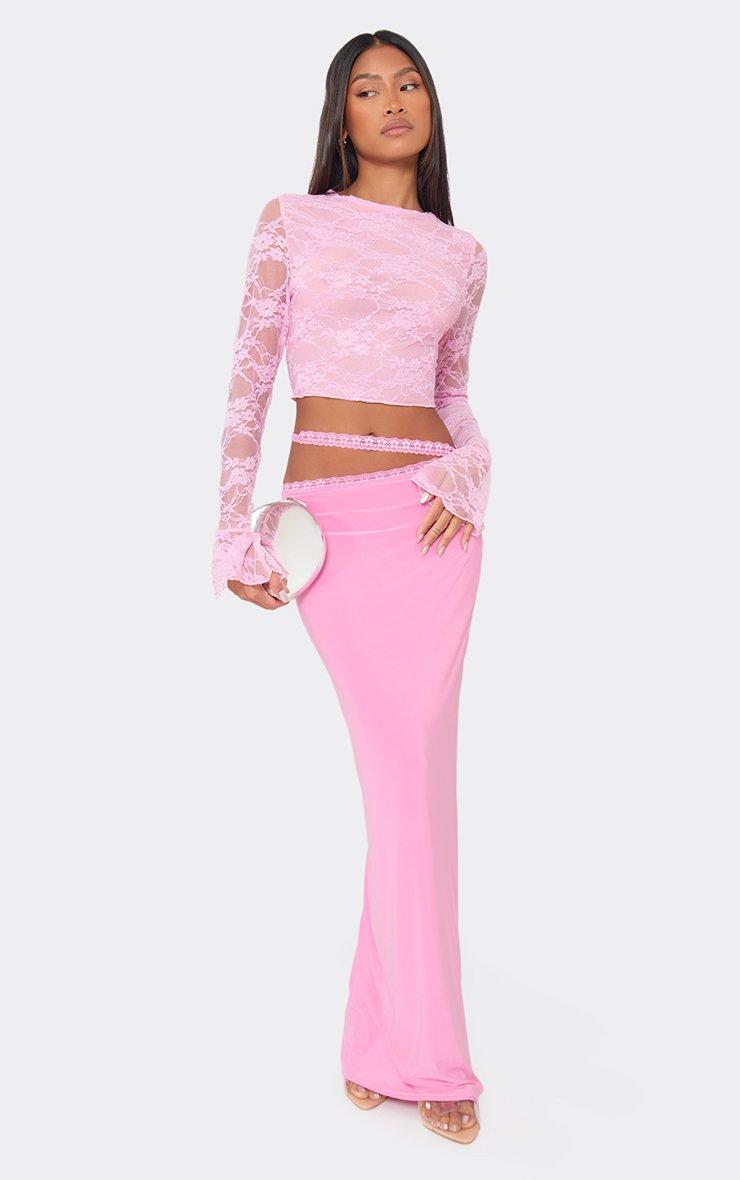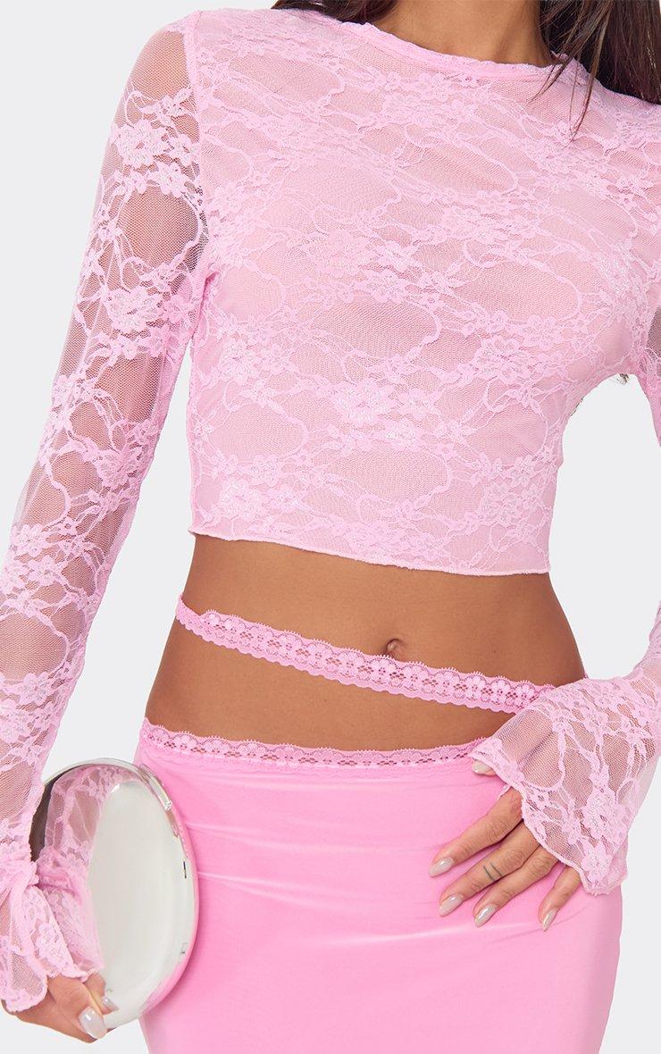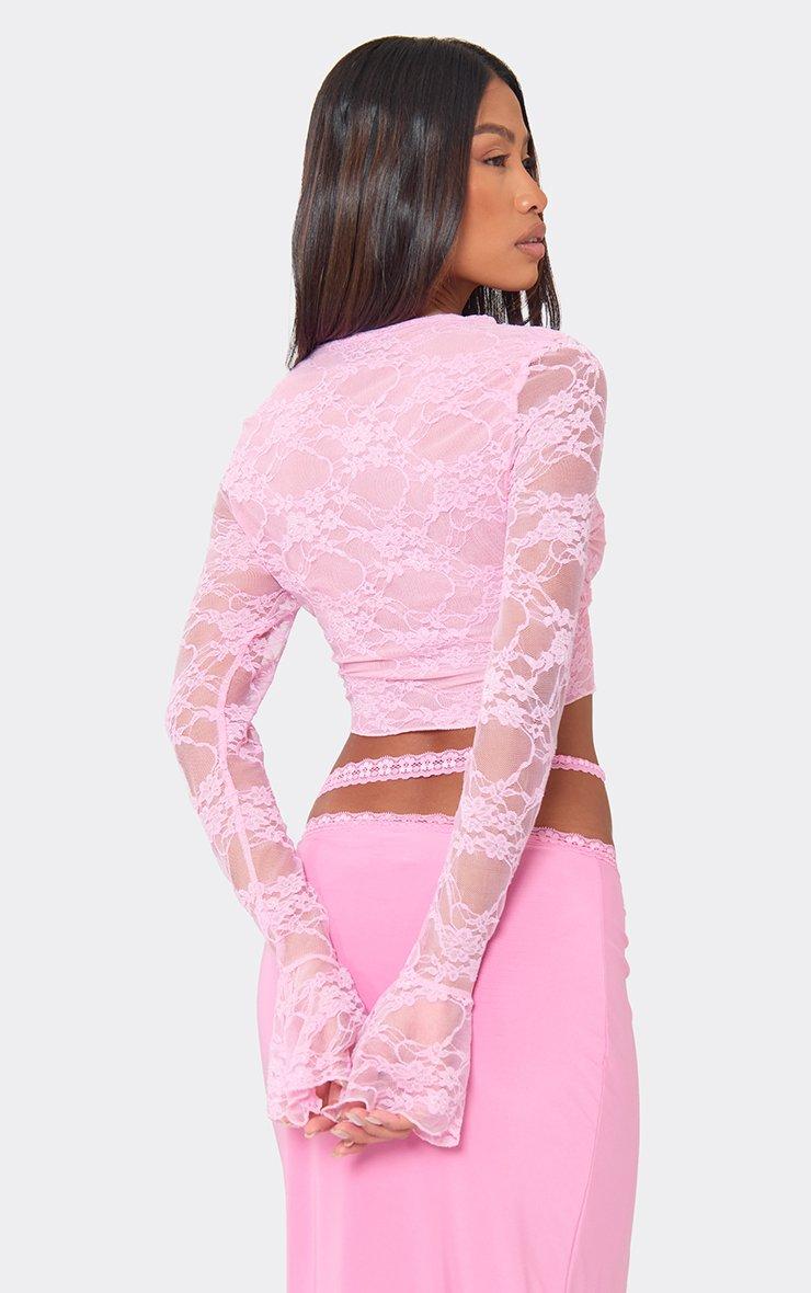 Flared Long Sleeve Top In Pink Lace