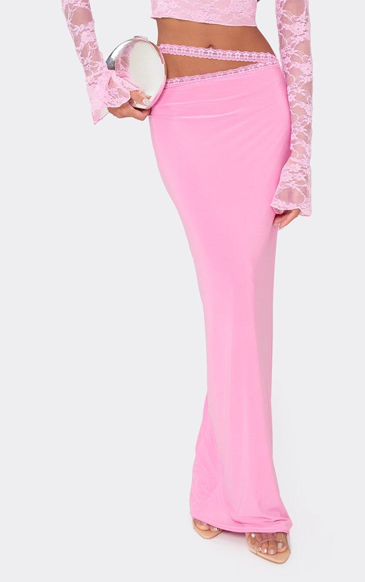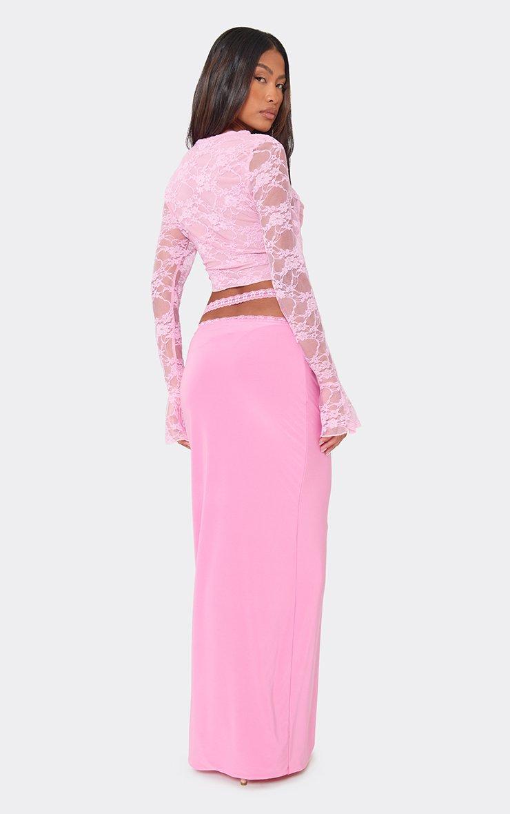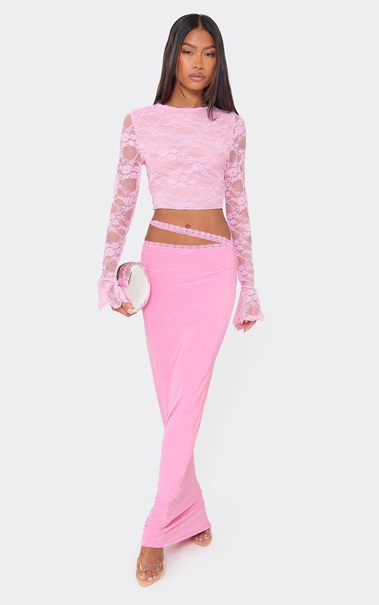 Mid Waist Wrap Detail Maxi Skirt In Pink Lace