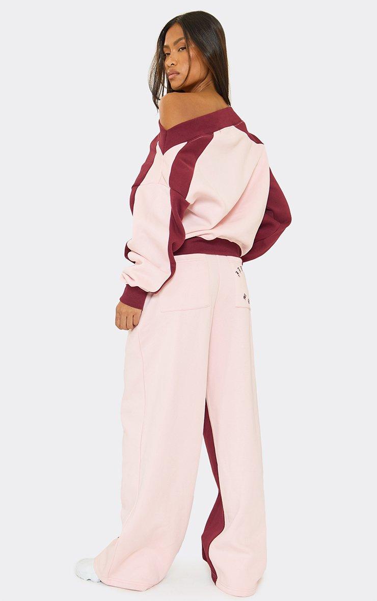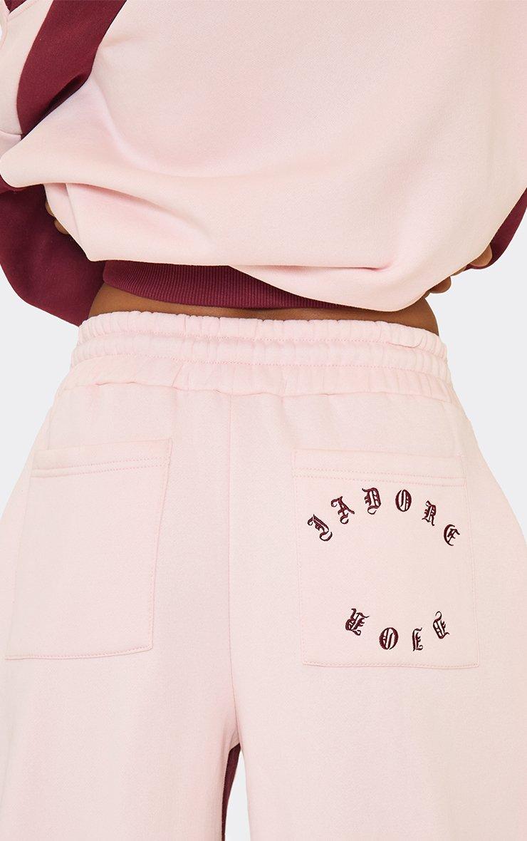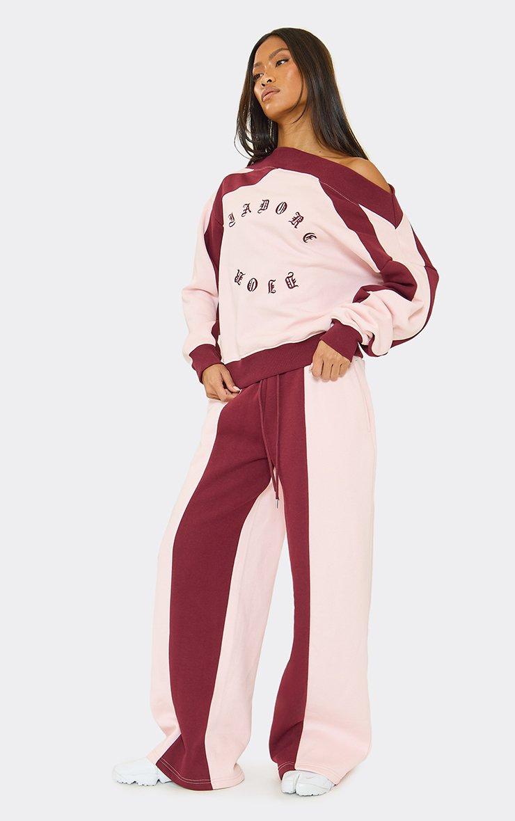 Tie Waist Contrast J'Adore Graphic Logo Wide Leg Joggers In Pink