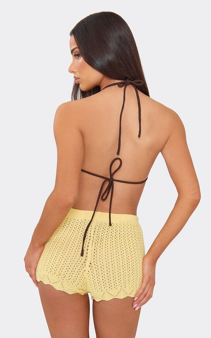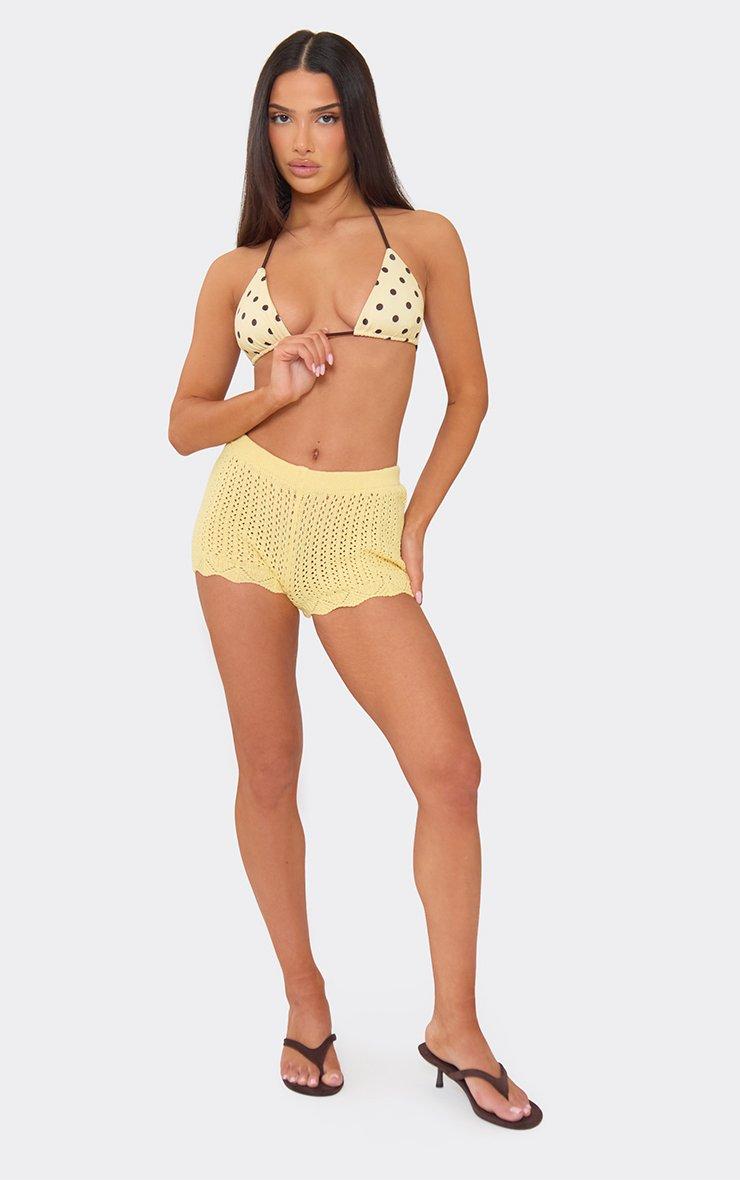 low rise mini shorts in yellow crochet knit