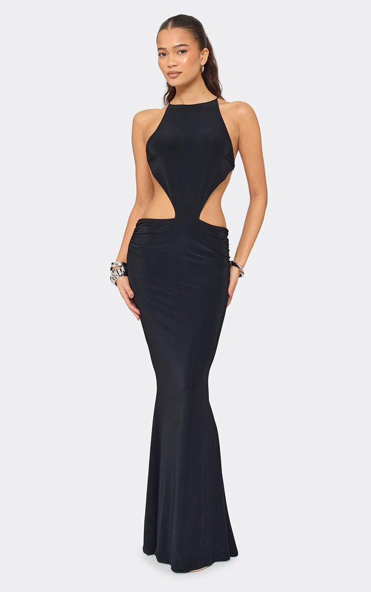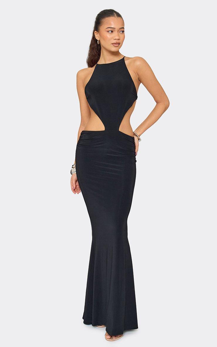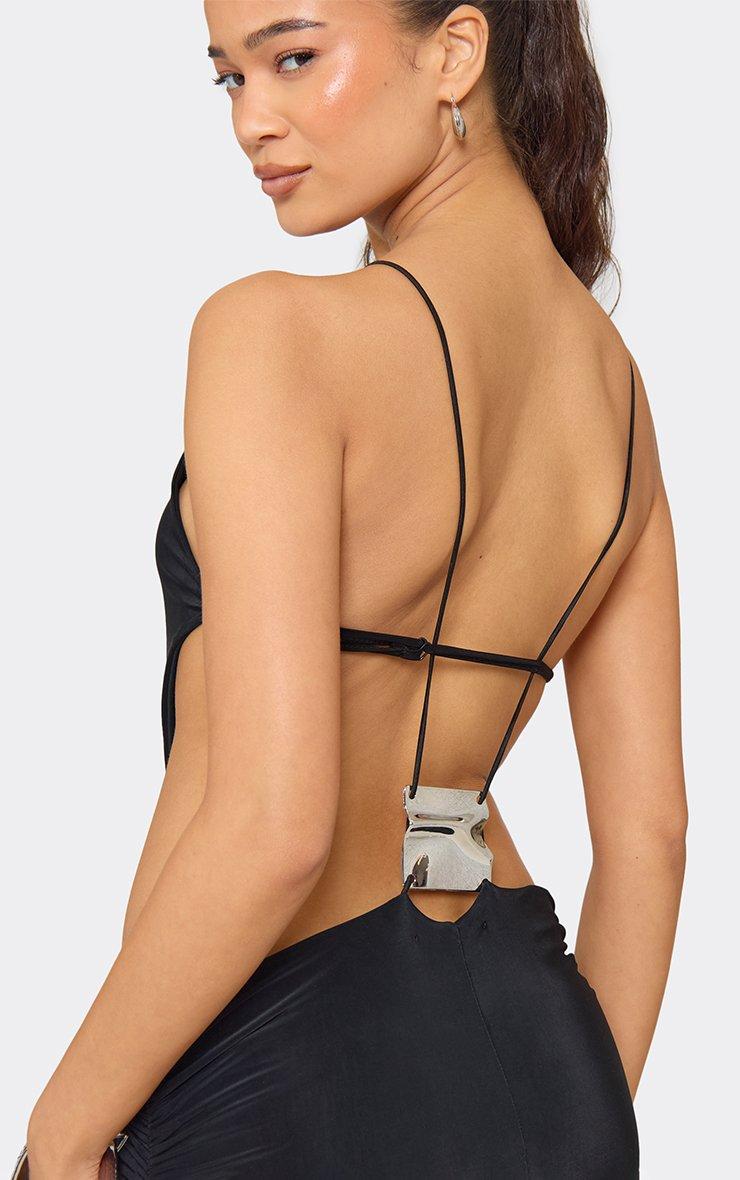 Strappy Open Back Trim Detail Maxi Dress In Black