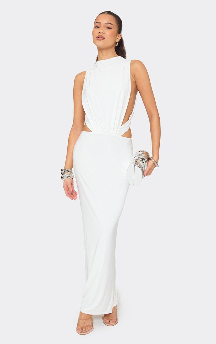 Sleeveless Cut Out Side Detail Open Back Maxi Dress In White