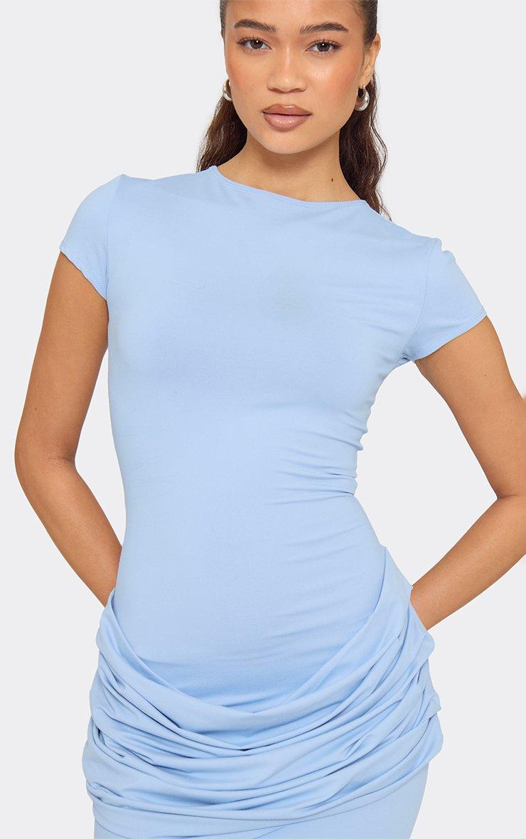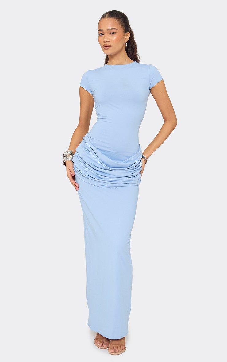 cap sleeve drape ruched front detail maxi dress in blue
