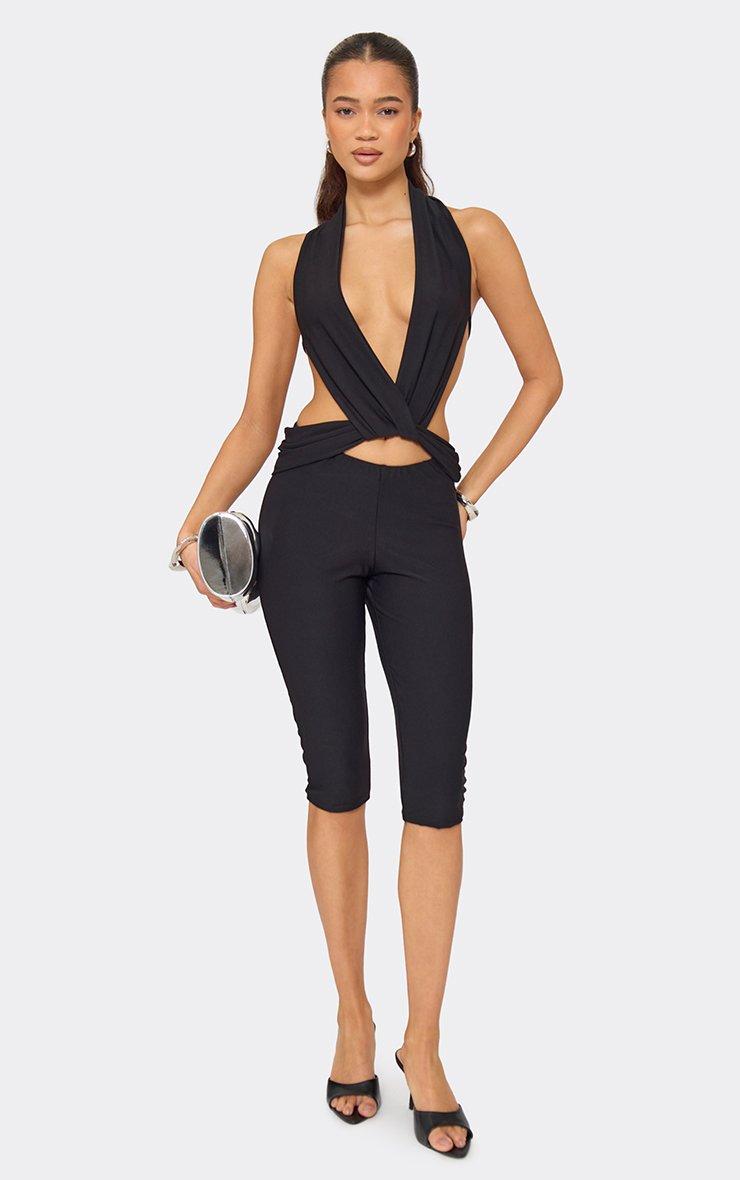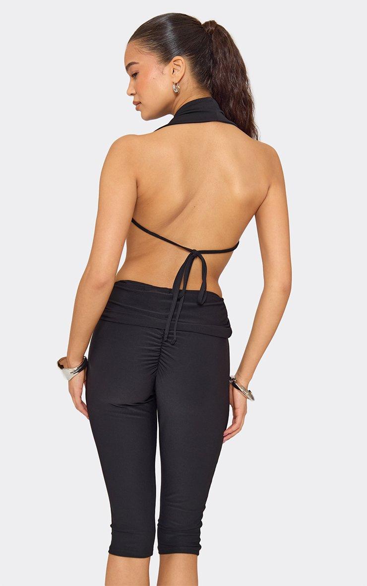 Low Rise Ruched Capri Leggings In Black