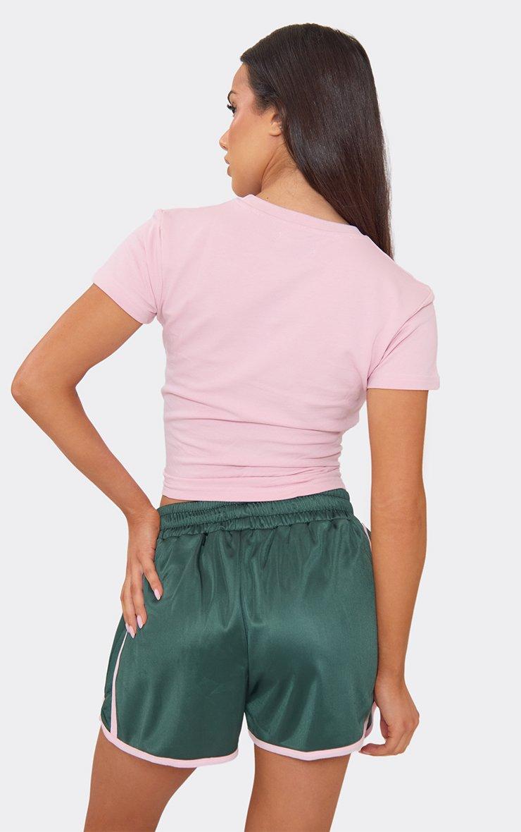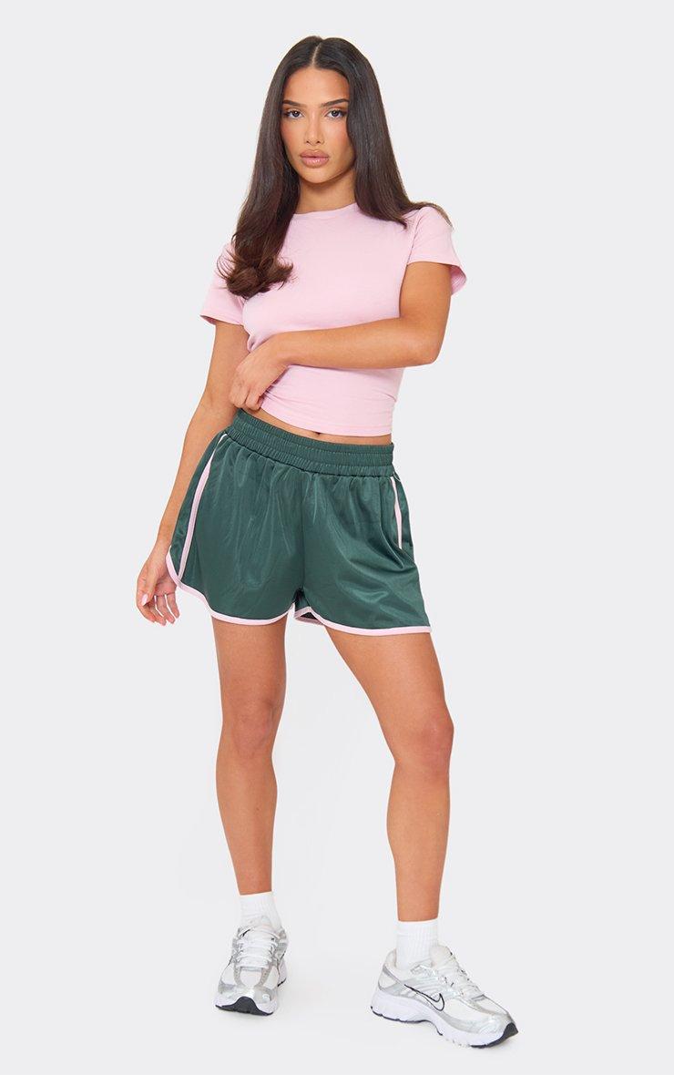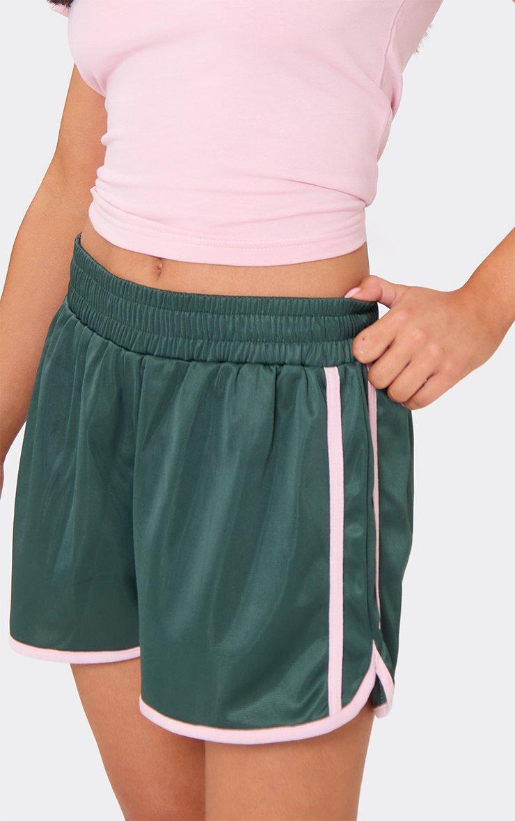 mid rise elasticated waist contrast tricot side stripe shorts in green