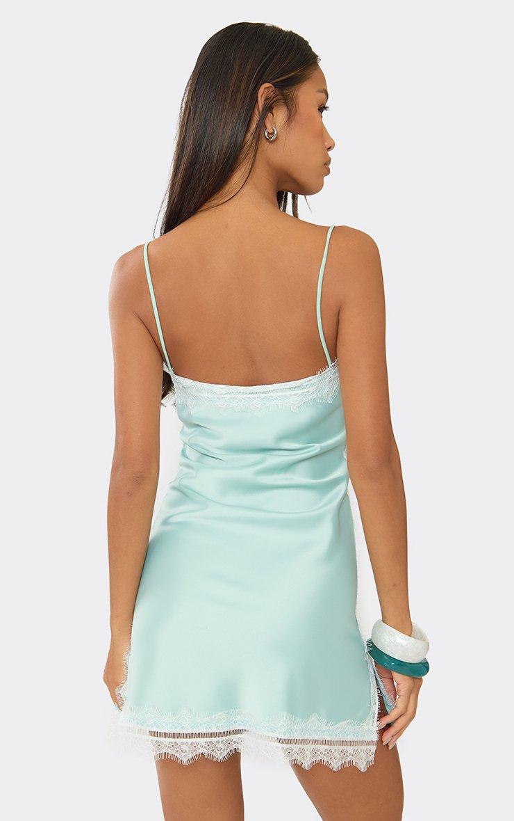 Strappy Straight Neck Lace Trim Mini Dress In Blue