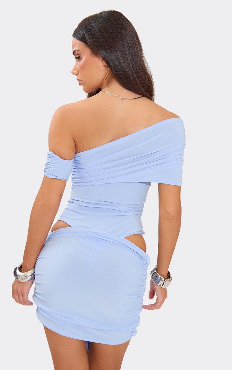 Off The Shoulder Ruched Layered Bodysuit In Blue Slinky
