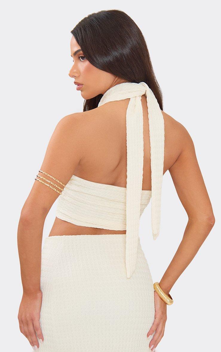 Halterneck Wrap Around Detail Top In Cream Textured