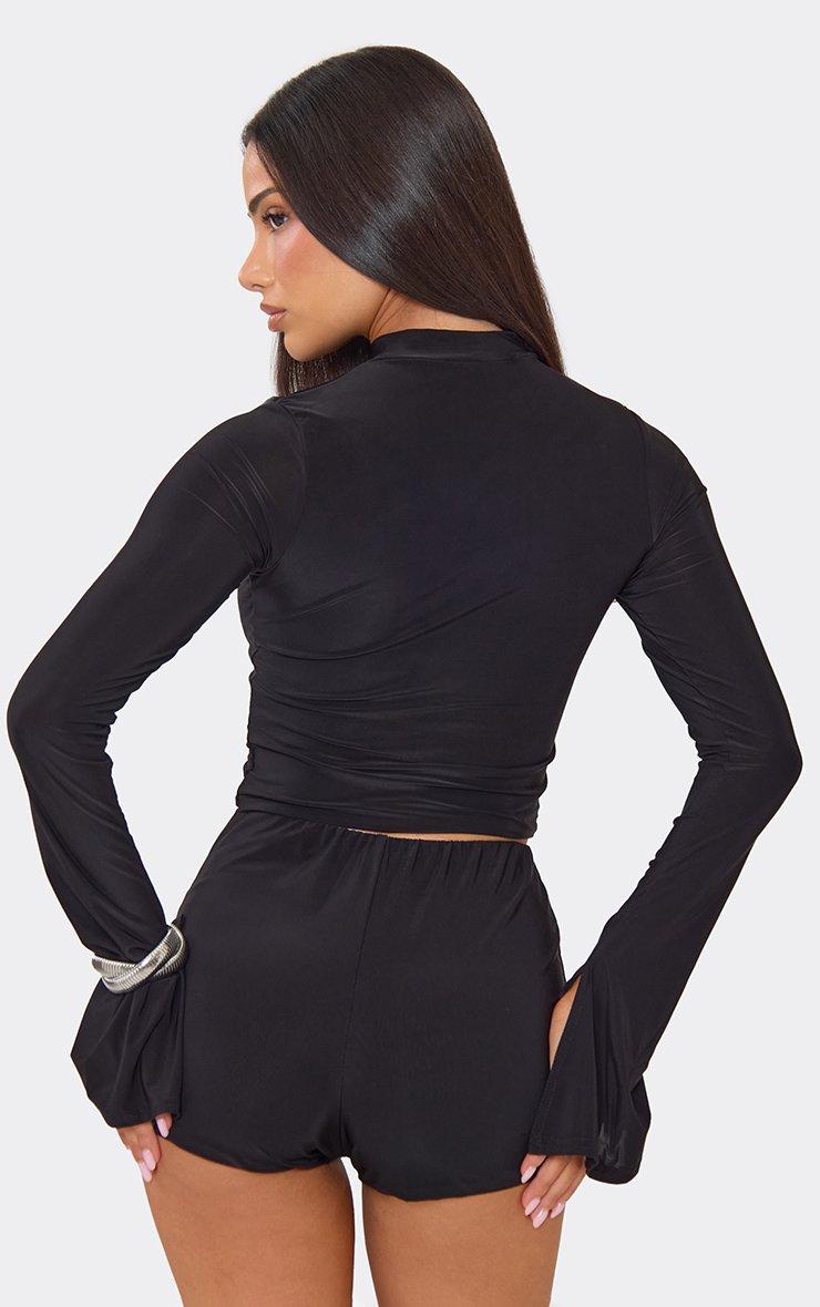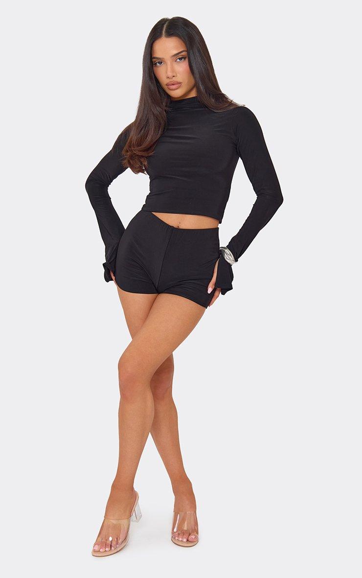 Low Rise Mini Shorts In Black Slinky