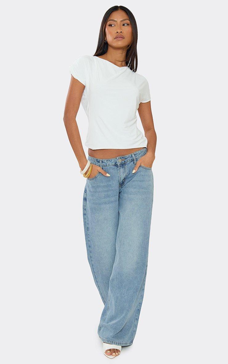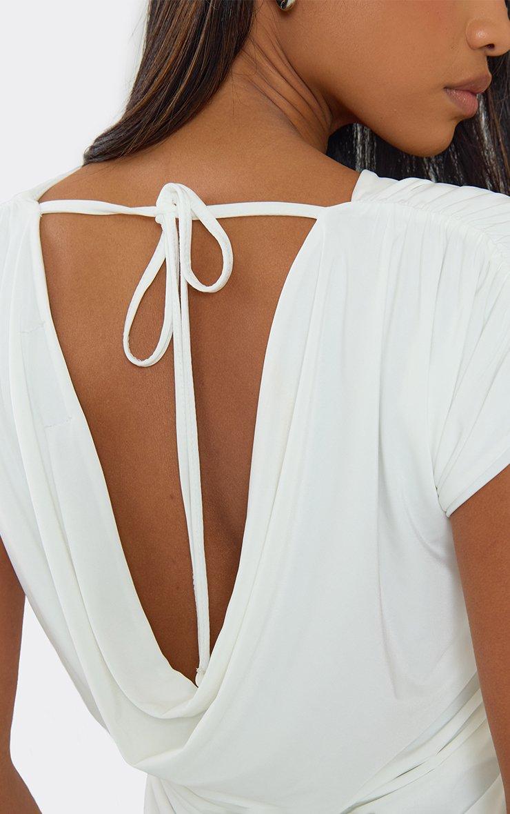 Short Sleeve Cowl Back Detail Top In White Slinky