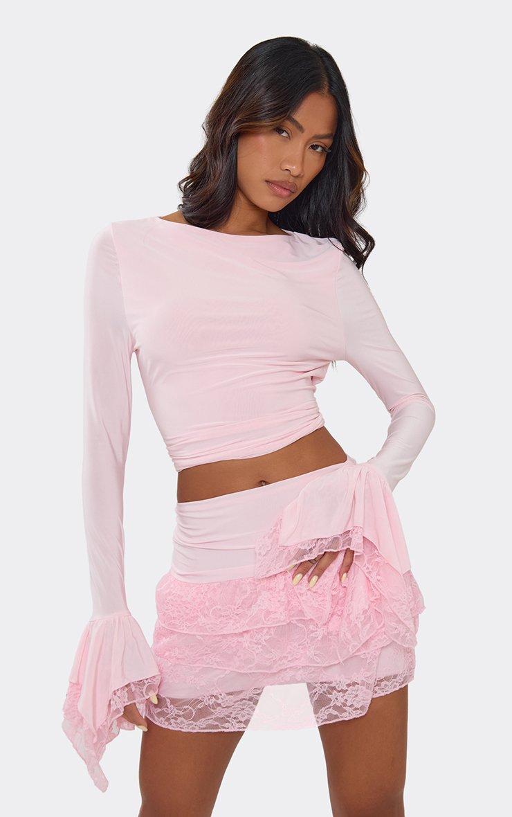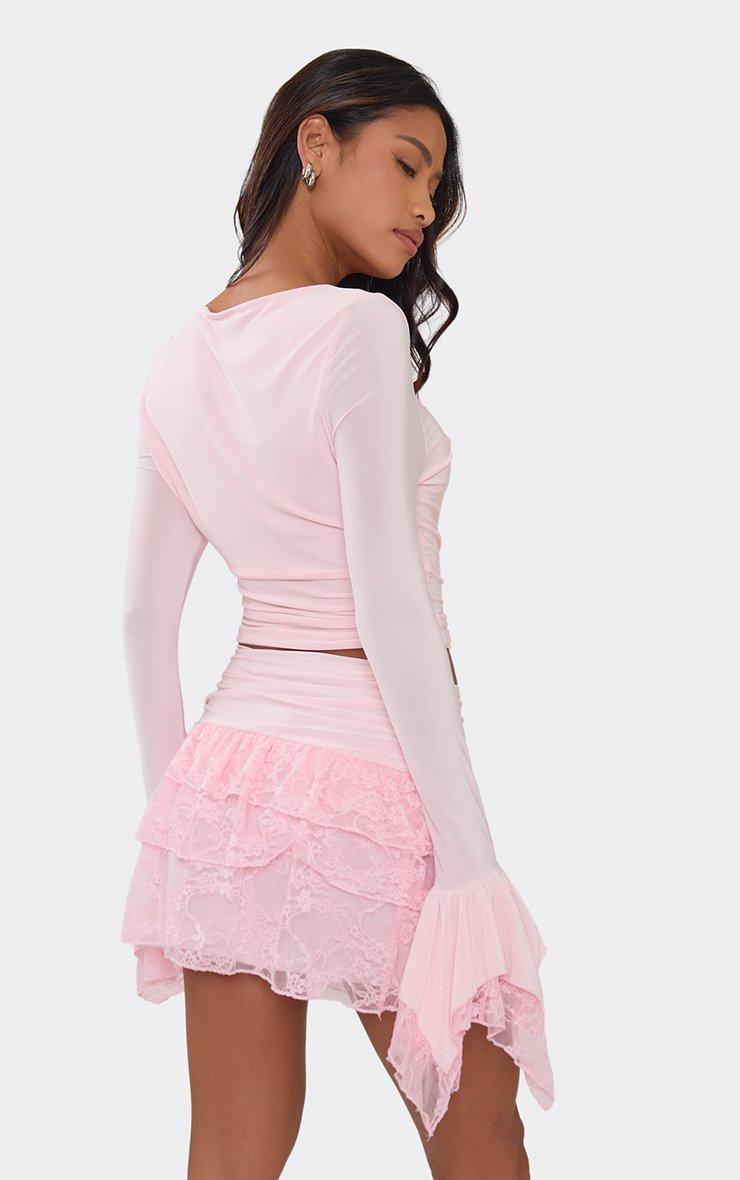 low waist ruffle lace detail mini skirt in pink
