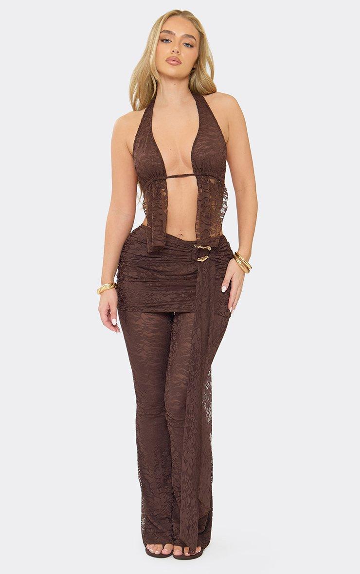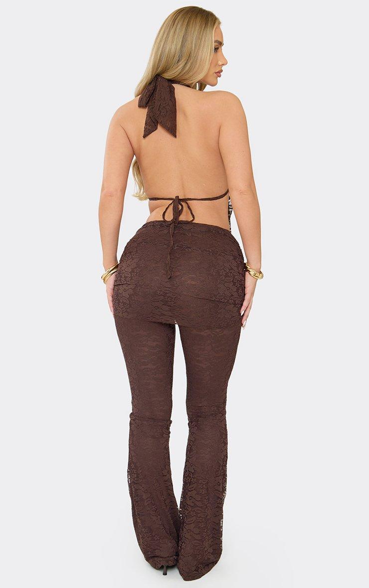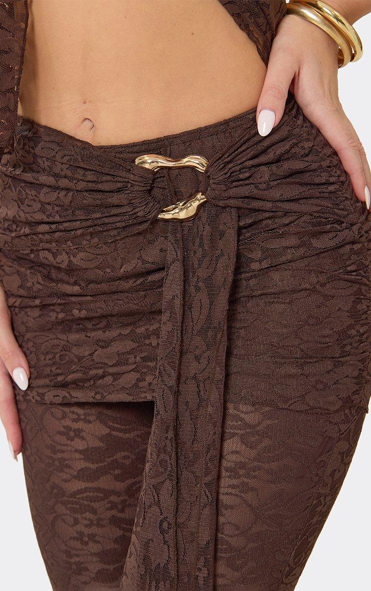 Mid Rise Trim Detail Trousers In Chocolate Brown Lace