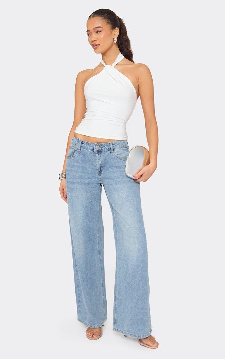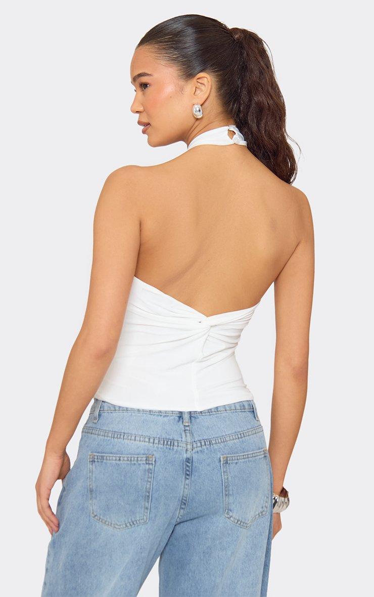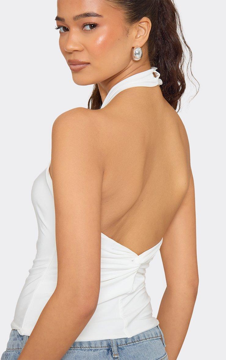 Halterneck Twist Knot Detail Open Back Top In White