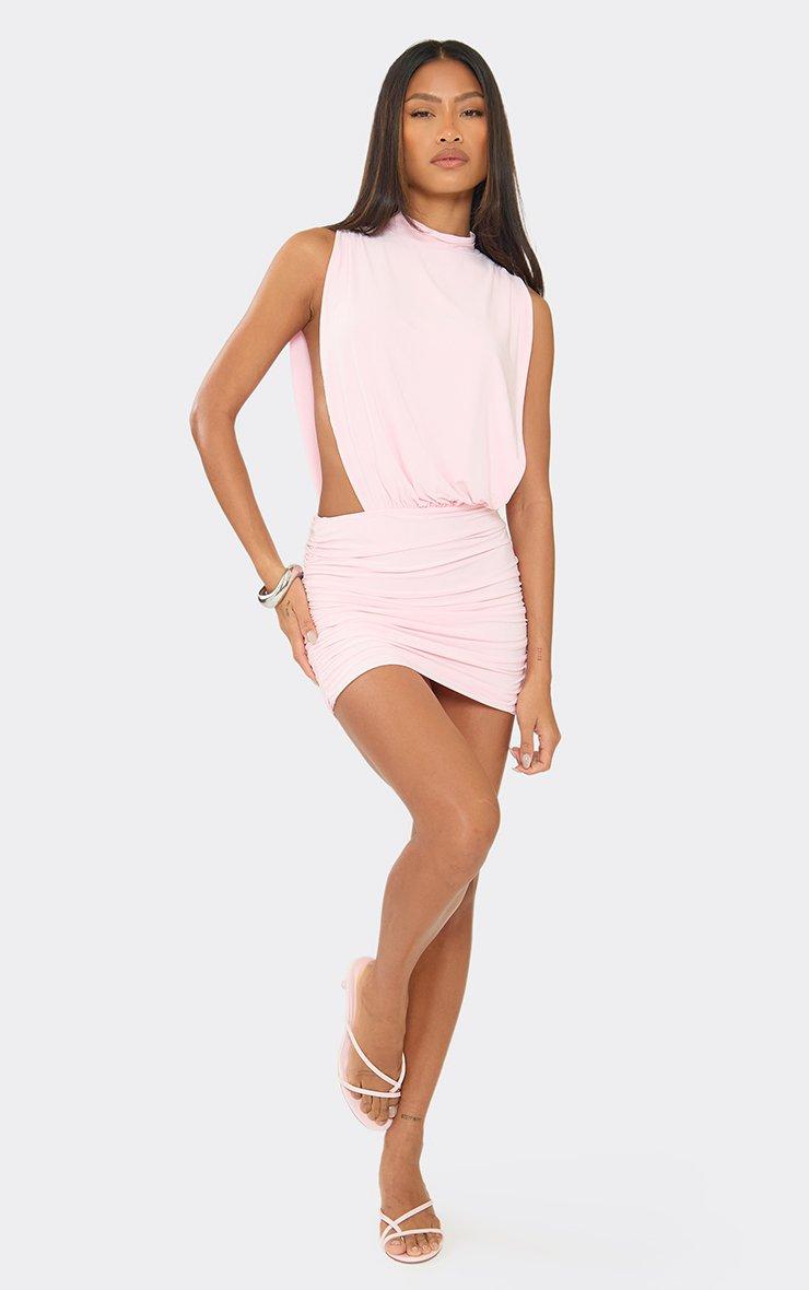 High Neck Open Side Mini Dress In Baby Pink