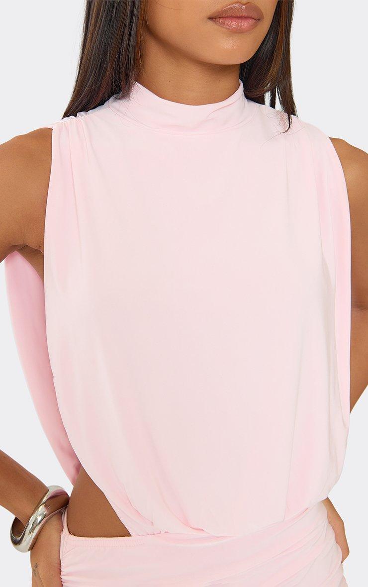 high neck open side mini dress in baby pink