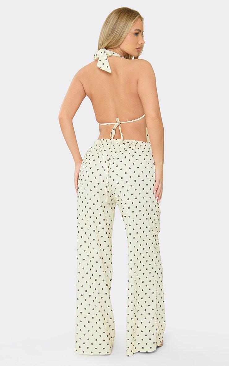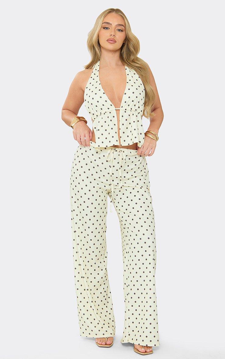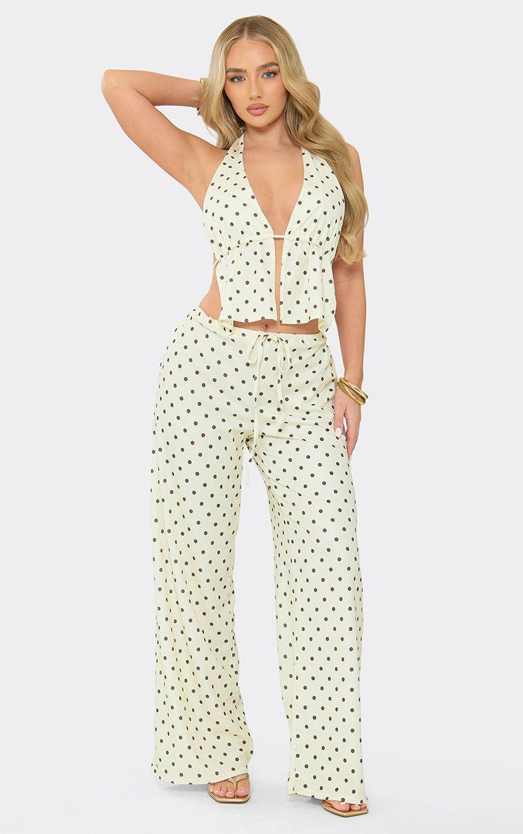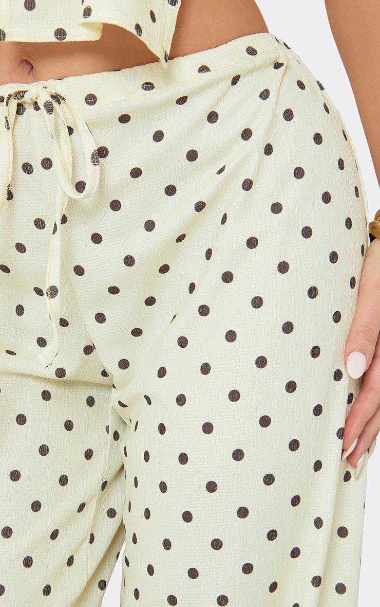 Tie Waist Wide Leg Trousers In Lemon Polka Dot