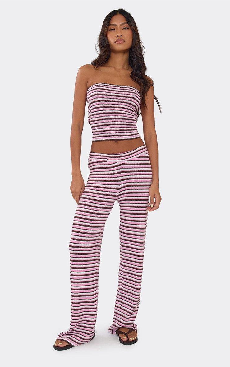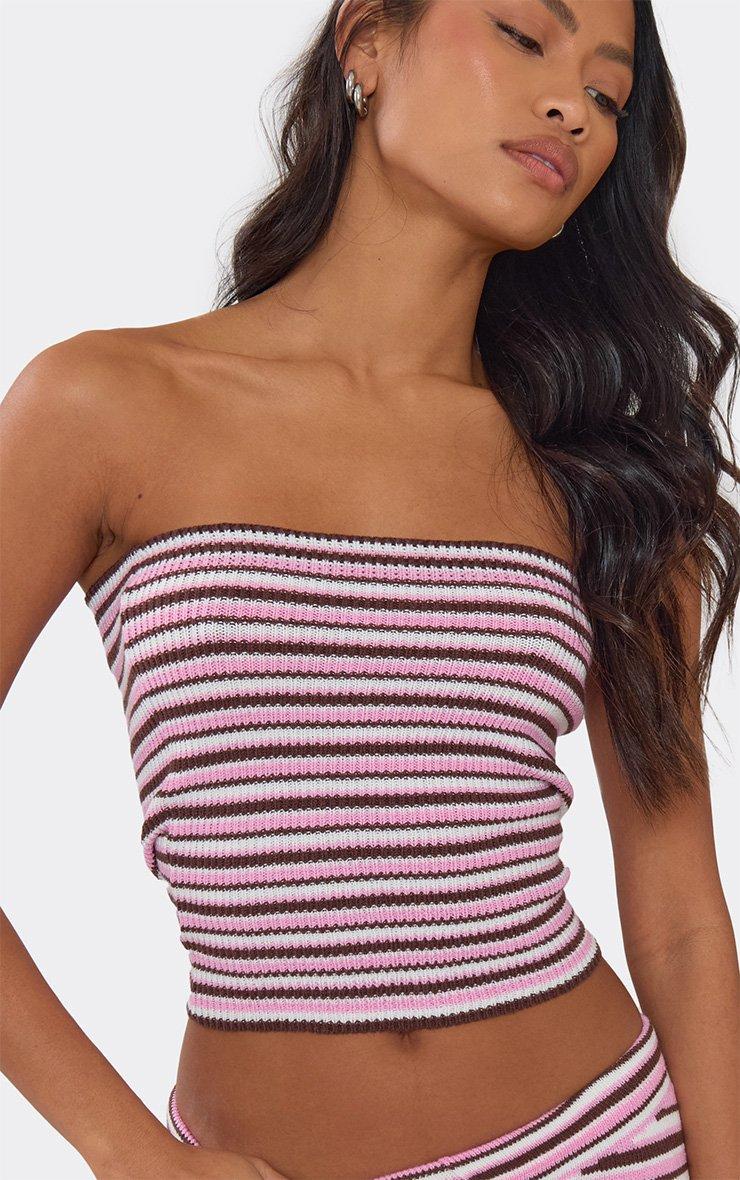 Bandeau Top In Pink Multi Stripe Knit