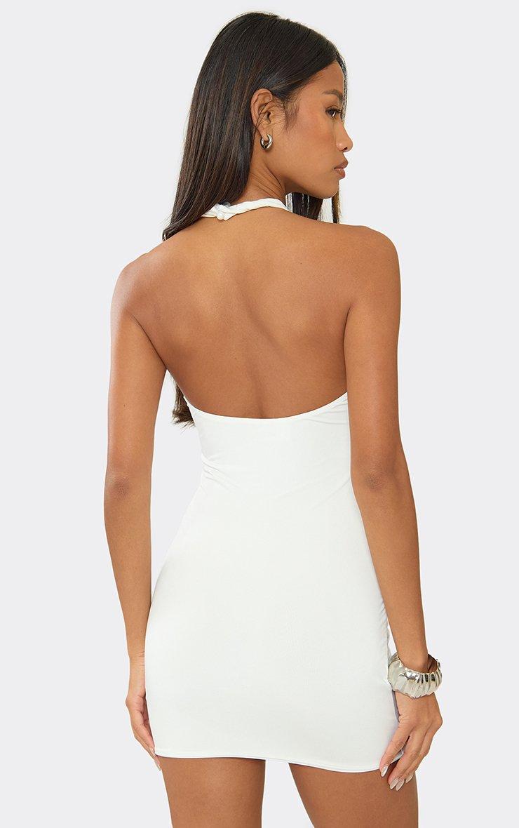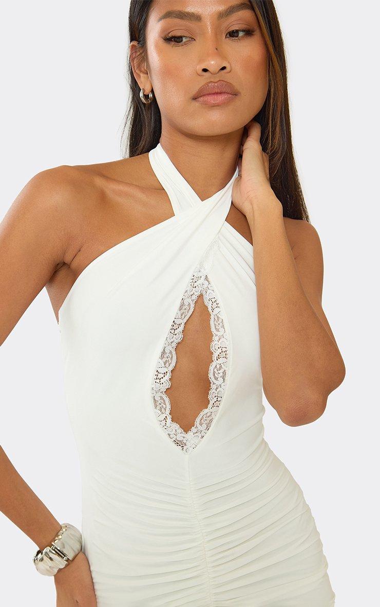 Halterneck Cut Out Lace Trim Ruched Mini Dress In Cream