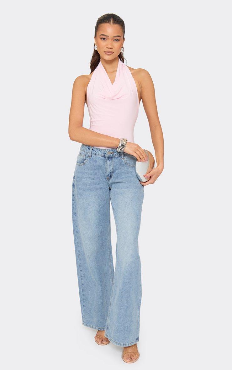 Halterneck Cowl Front Bodysuit In Baby Pink Slinky
