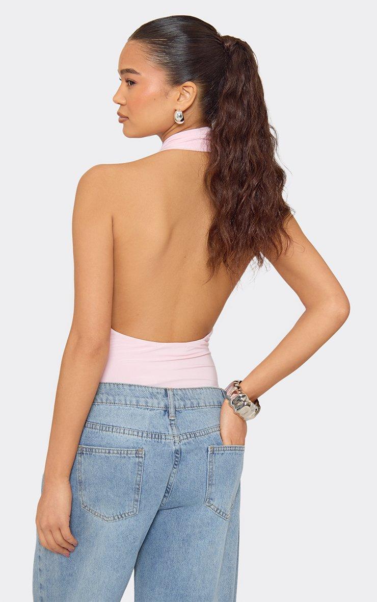 halterneck cowl front bodysuit in baby pink slinky