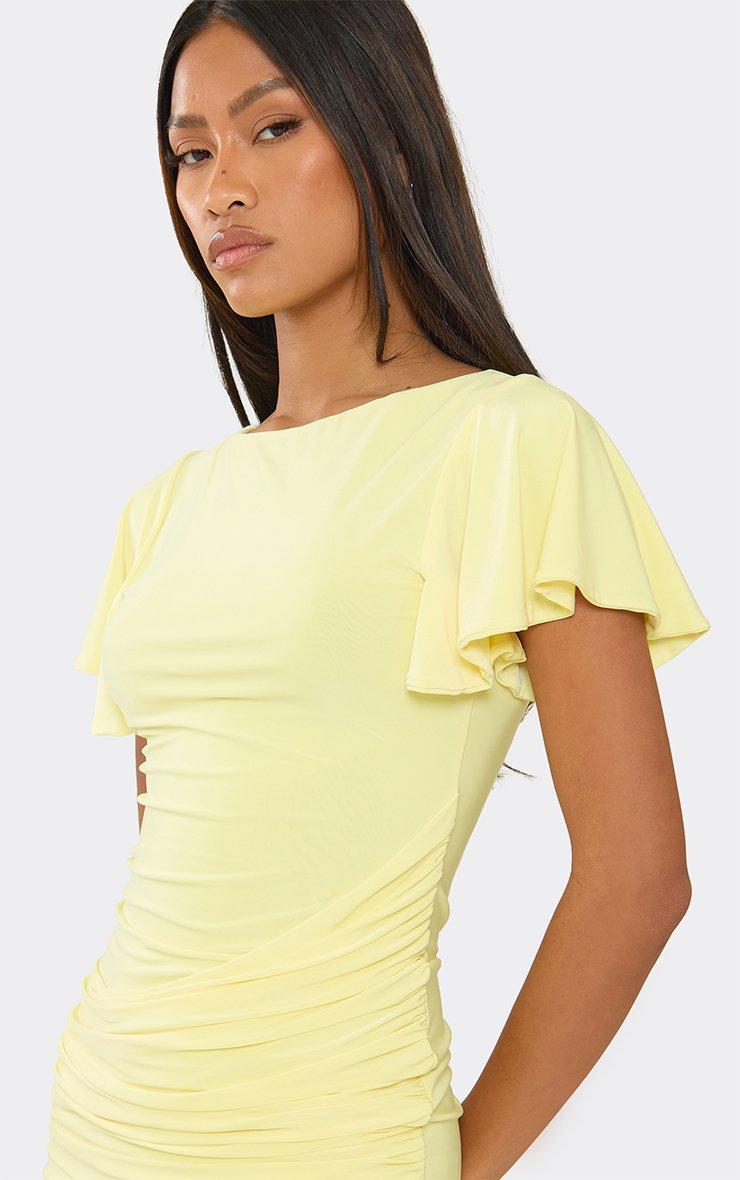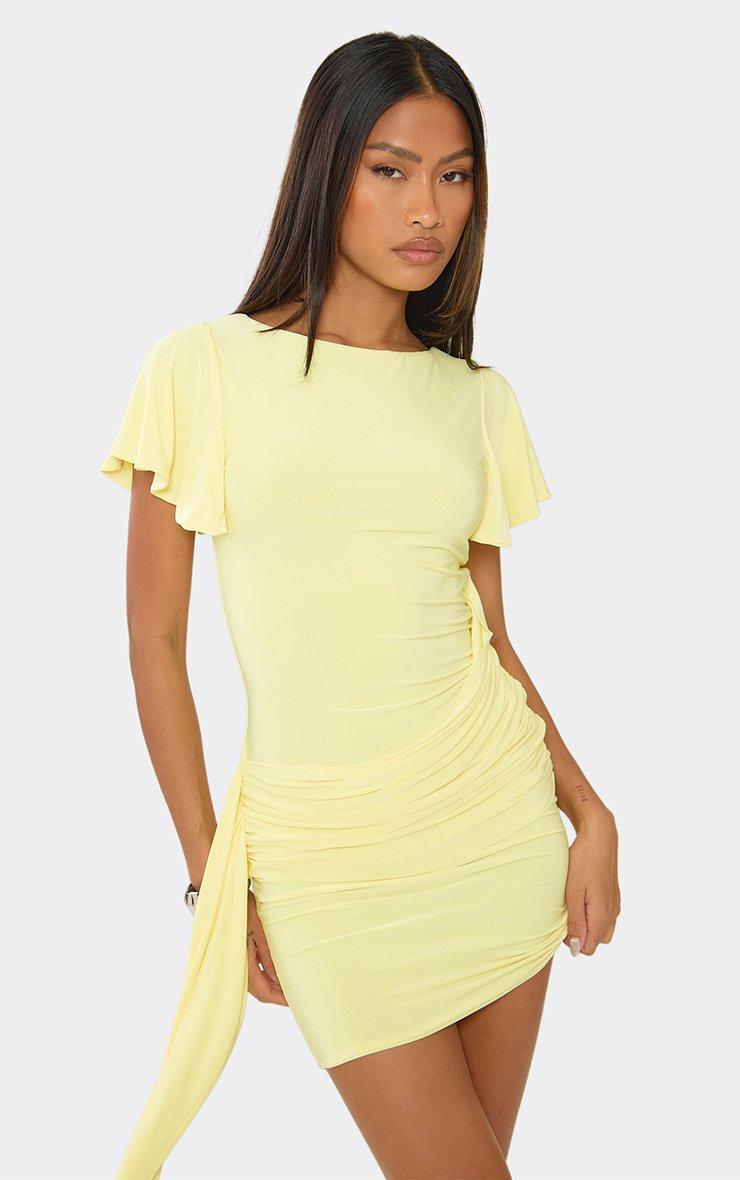 Short Sleeve Ruched Panel Detail Draped Mini Dress In Yellow