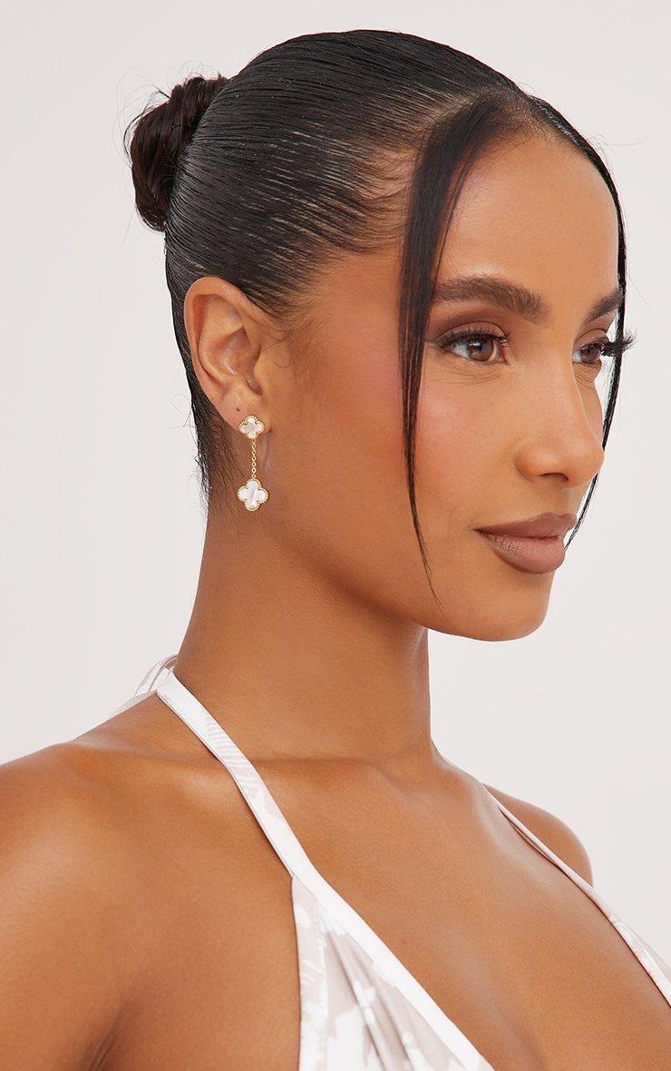drop detail earrings in white and gold