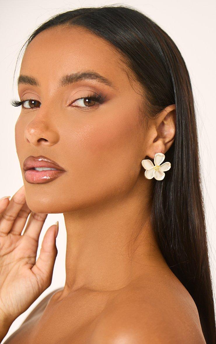 flower detail stud earring in cream and gold