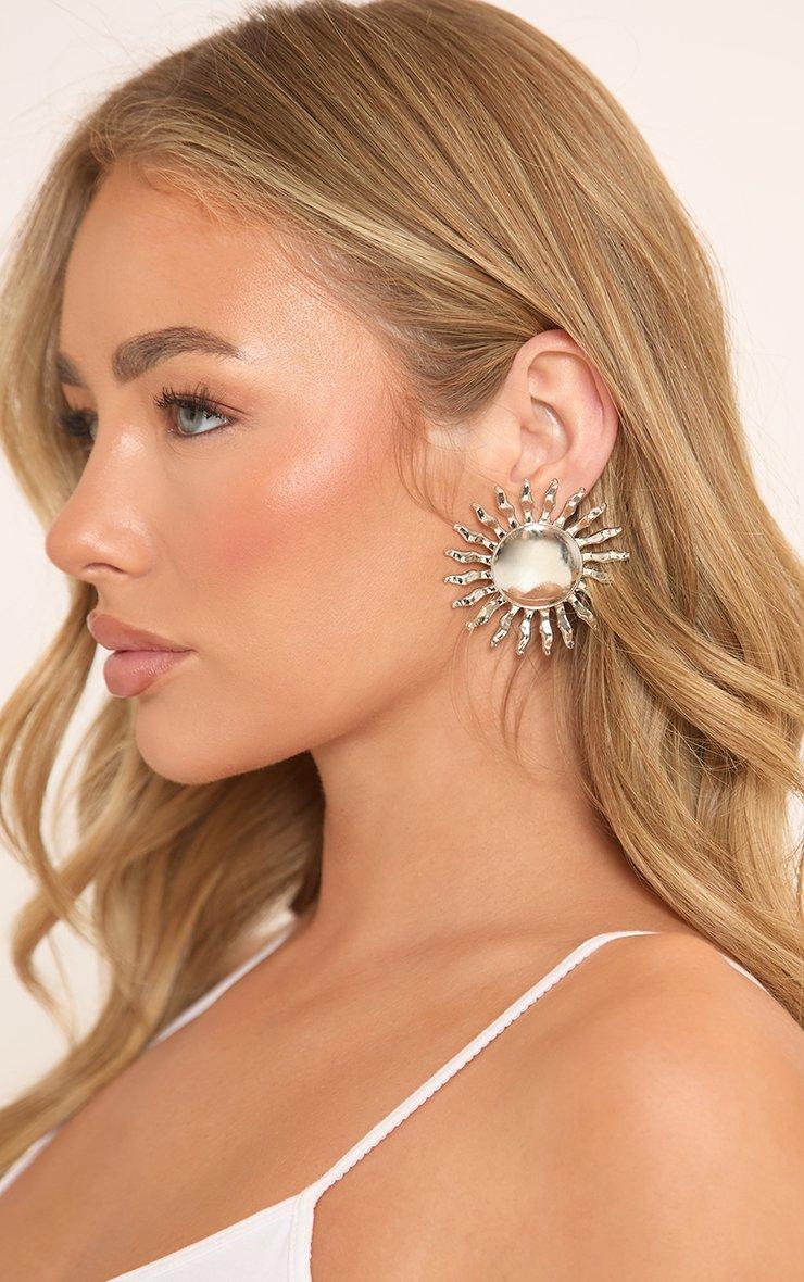 Sun Detail Oversized Stud Earrings In Silver