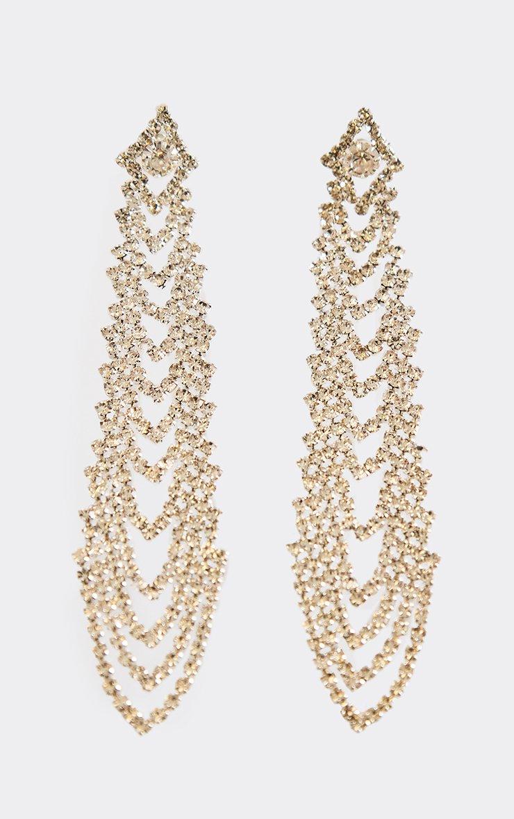 Oversized Gem Detail Diamante Drop Earrings In Silver