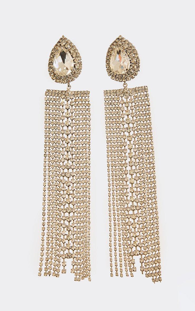 Oversized Gem Detail Diamante Drop Earrings In Silver
