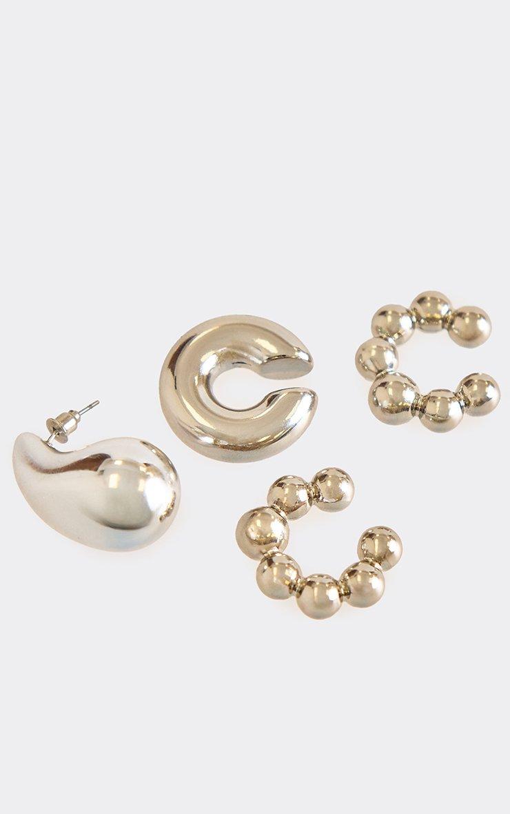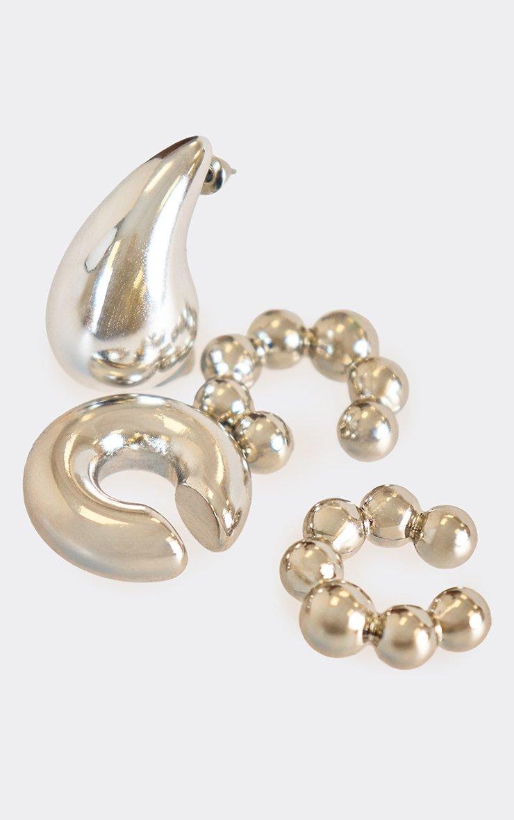 Chunky Curved Detail Mini Hoop Earrings In Silver