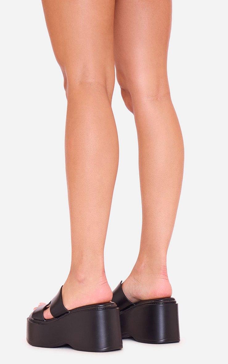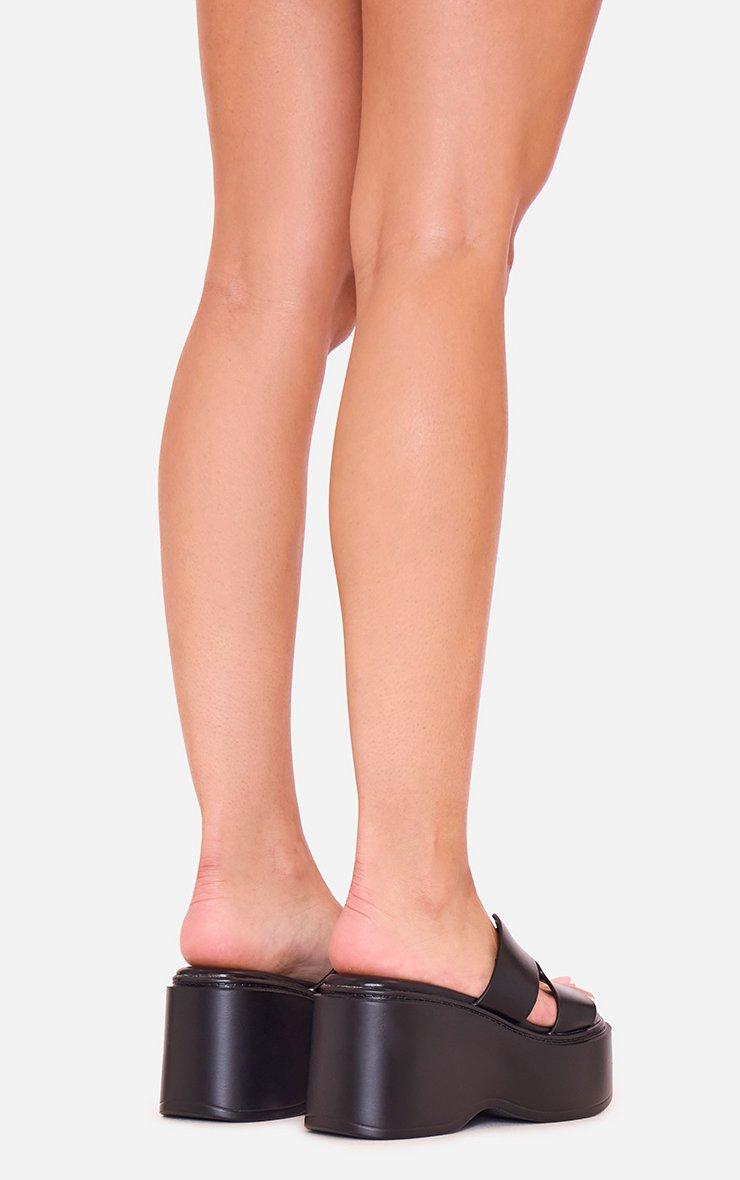 Roseau Caged Strap Platform Wedge Slider Sandal In Black Faux Leather