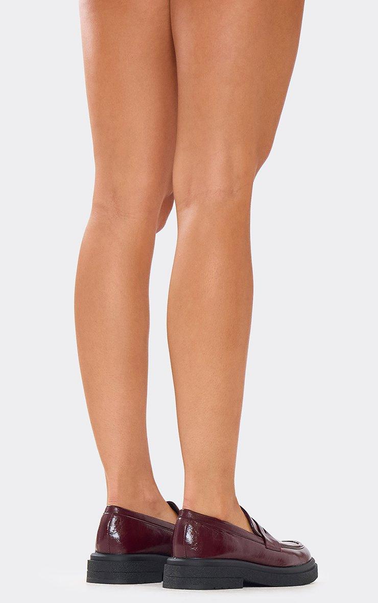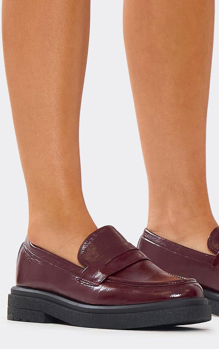 Frito Chunky Sole Flat Loafers In Burgundy Faux Leather