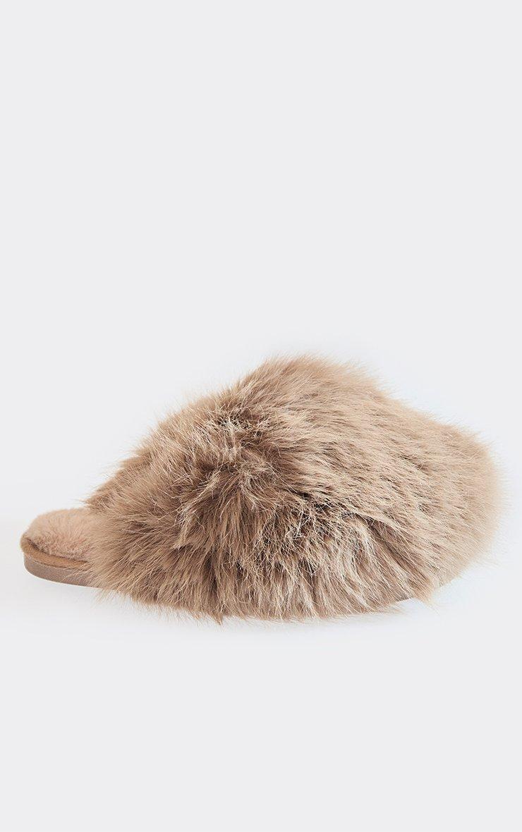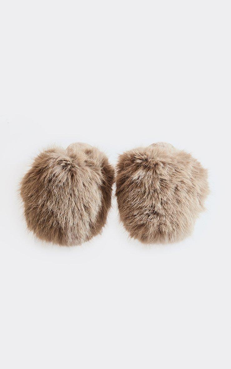Nighttime Bow Detail Slipper In Beige Faux Fur