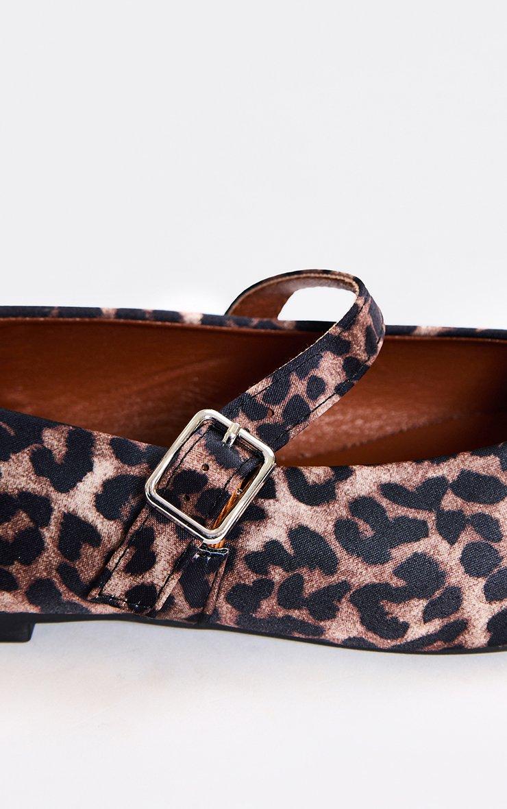 Stilla Buckle Detail Flat Ballet Pump In Leopard Print Satin