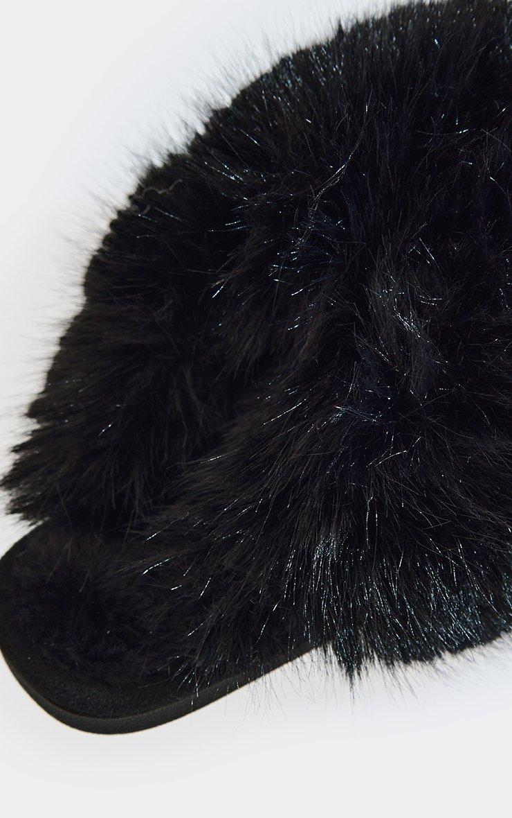 Fire Iridescent Buckle Detail Slipper In Black Faux Fur