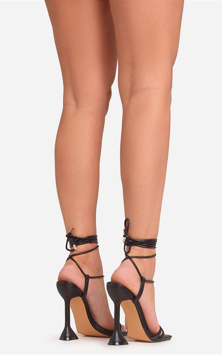 Eve Square Toe Strappy Heel In Black Faux Leather