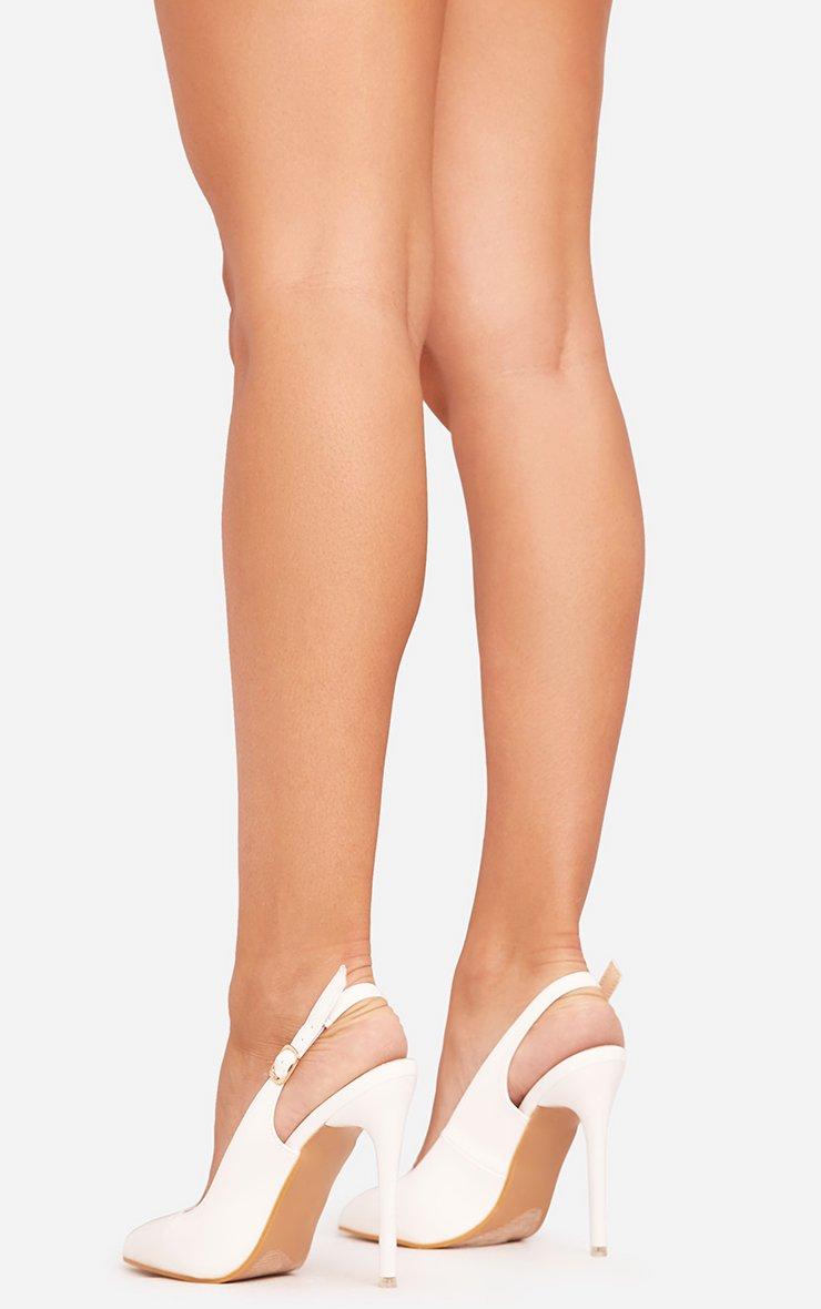 Djon Pointed Toe Slingback Court Heel In White Patent
