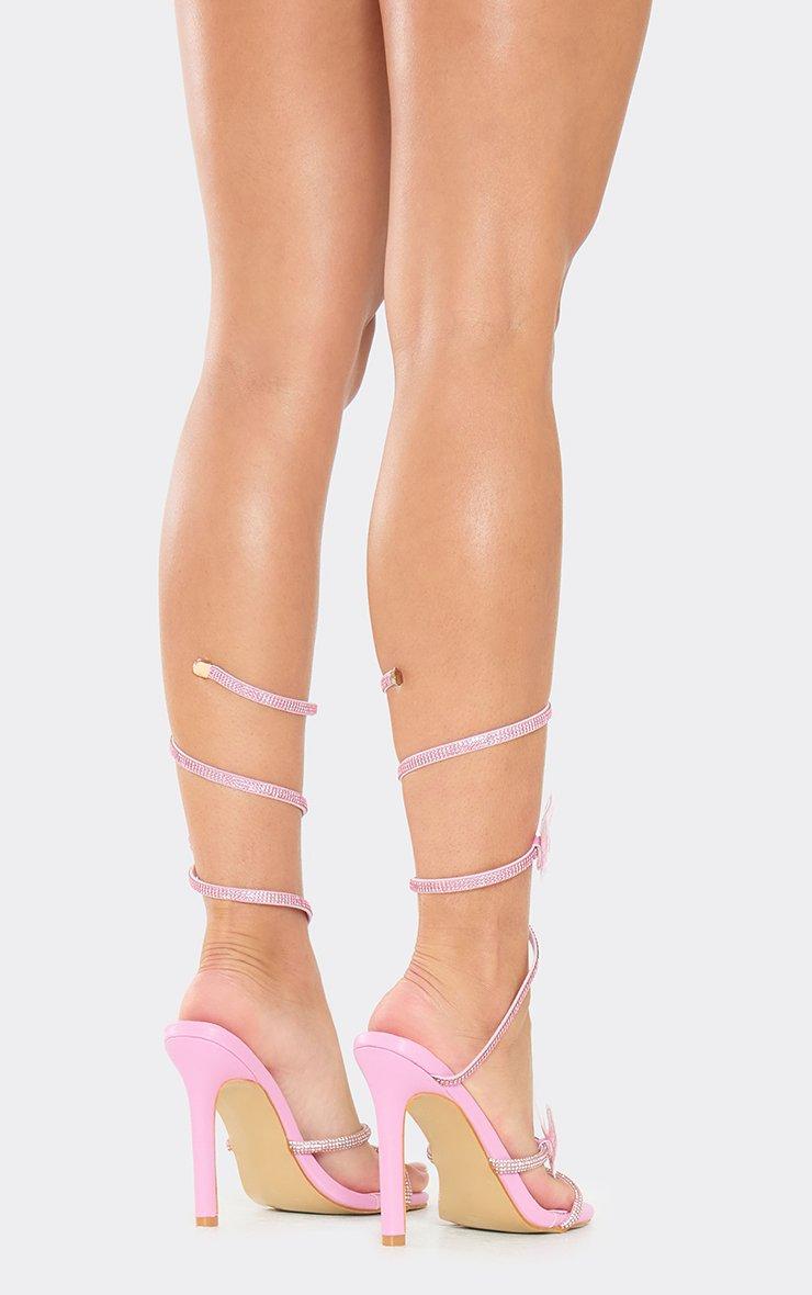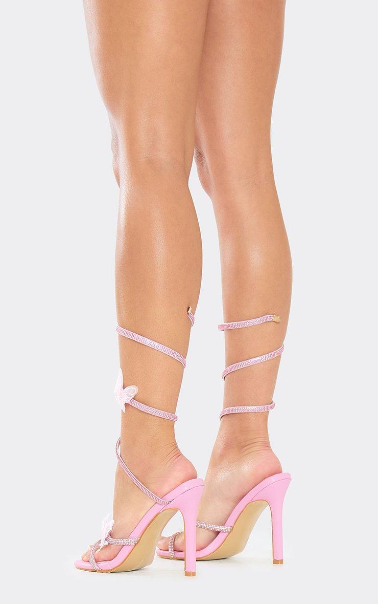 Julia Butterfly Detail Wrap Around Diamante Strap Stiletto Heel In Pink