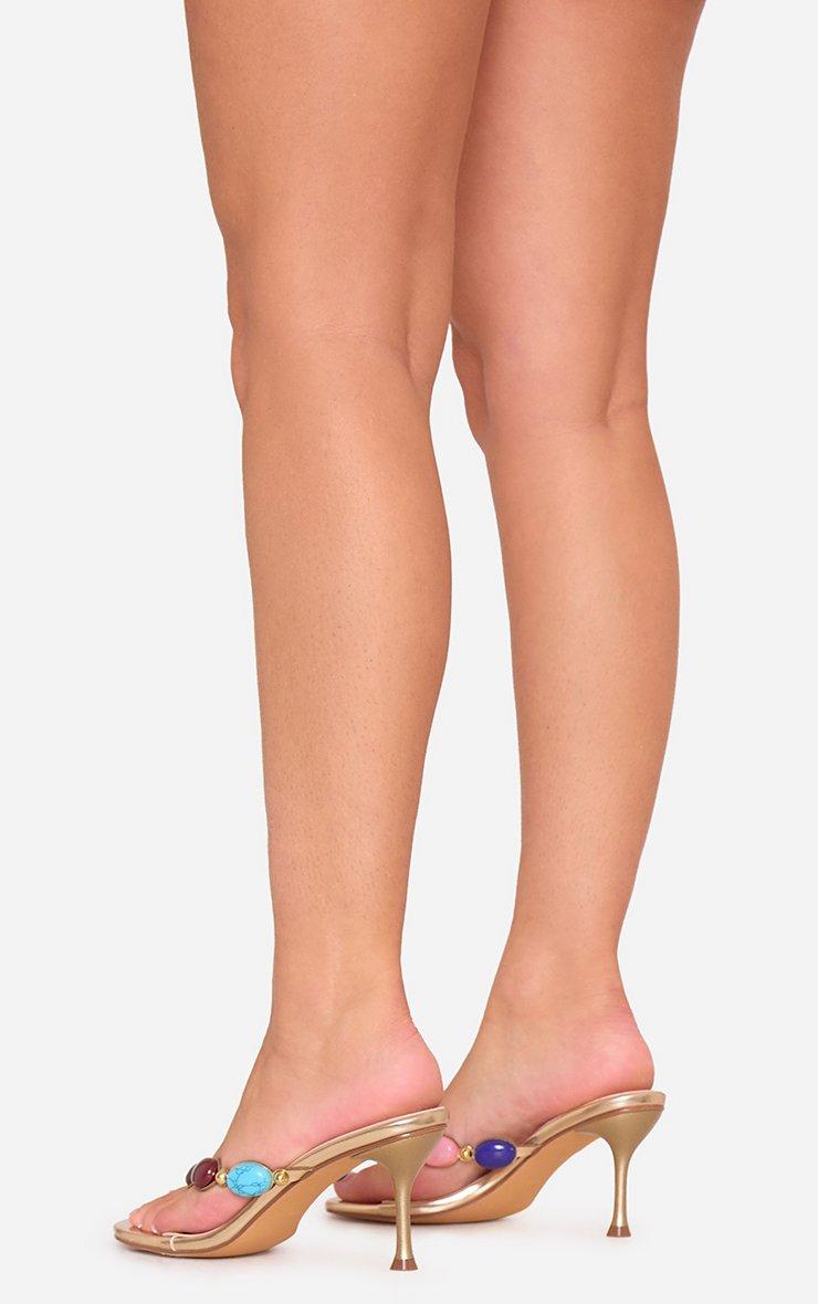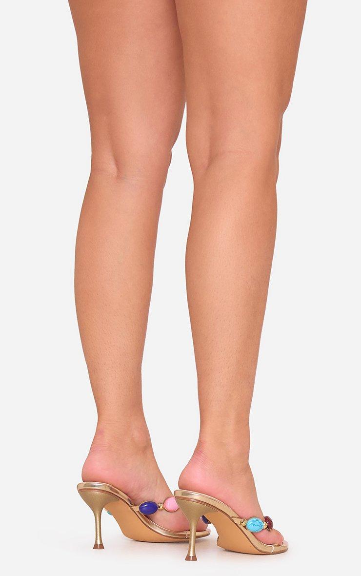 Nina Stone Detail Thong Strap Heel Mule In Brown Faux Leather