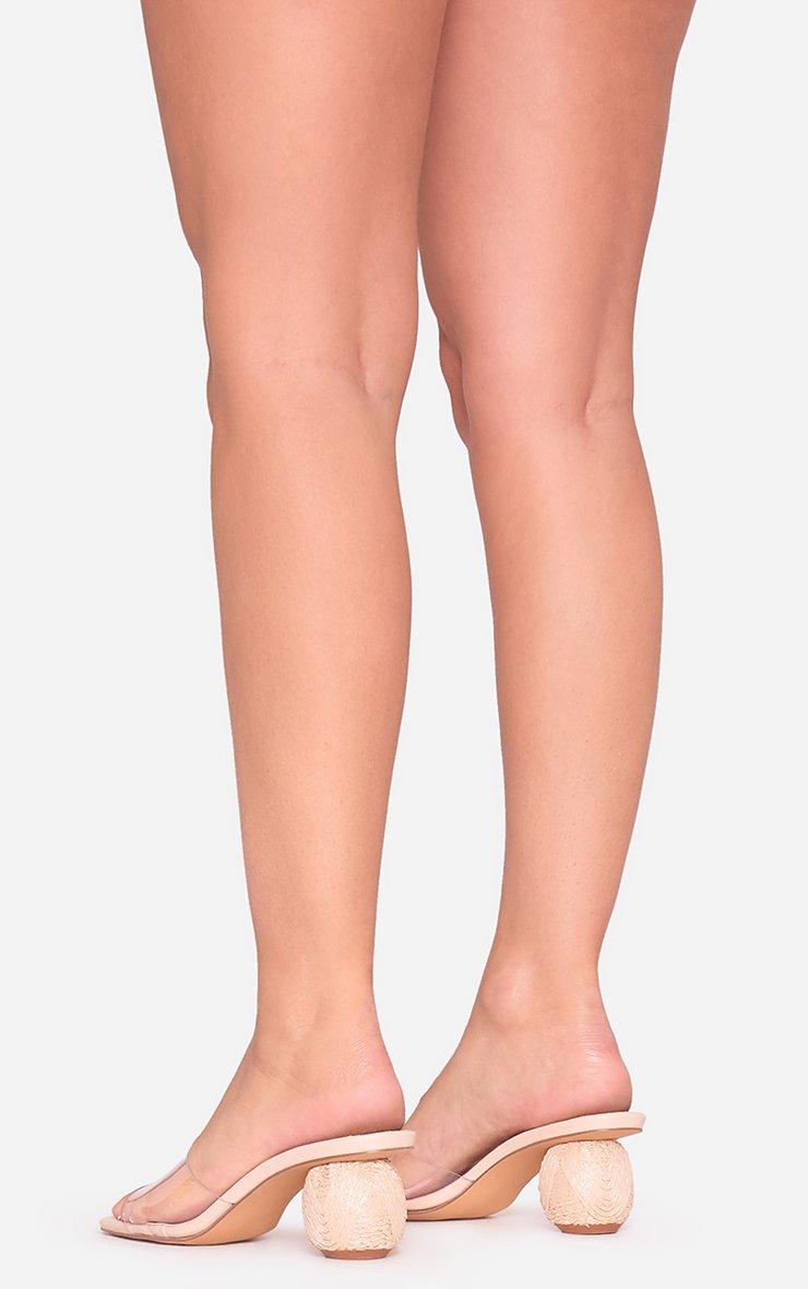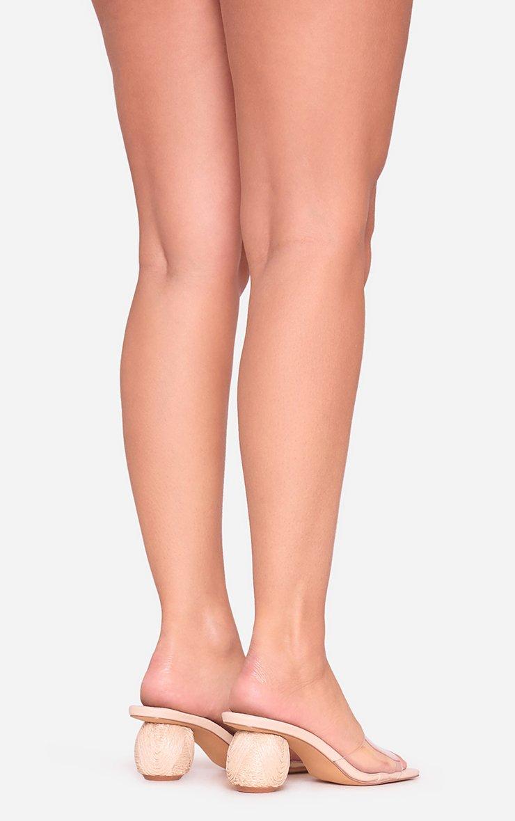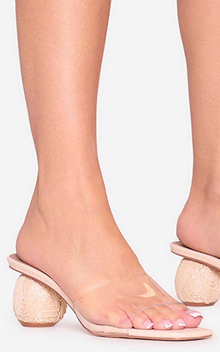 Devin Clear Perspex Strap Round Woven Heel Mule In Nude Faux Leather