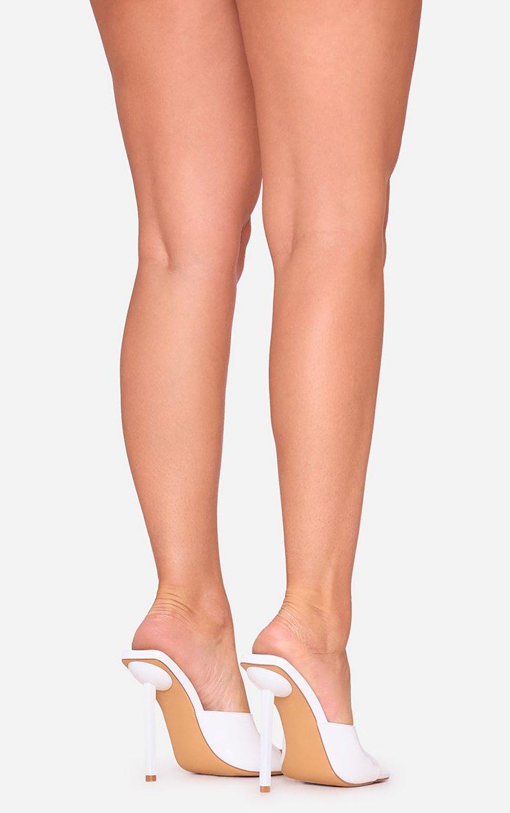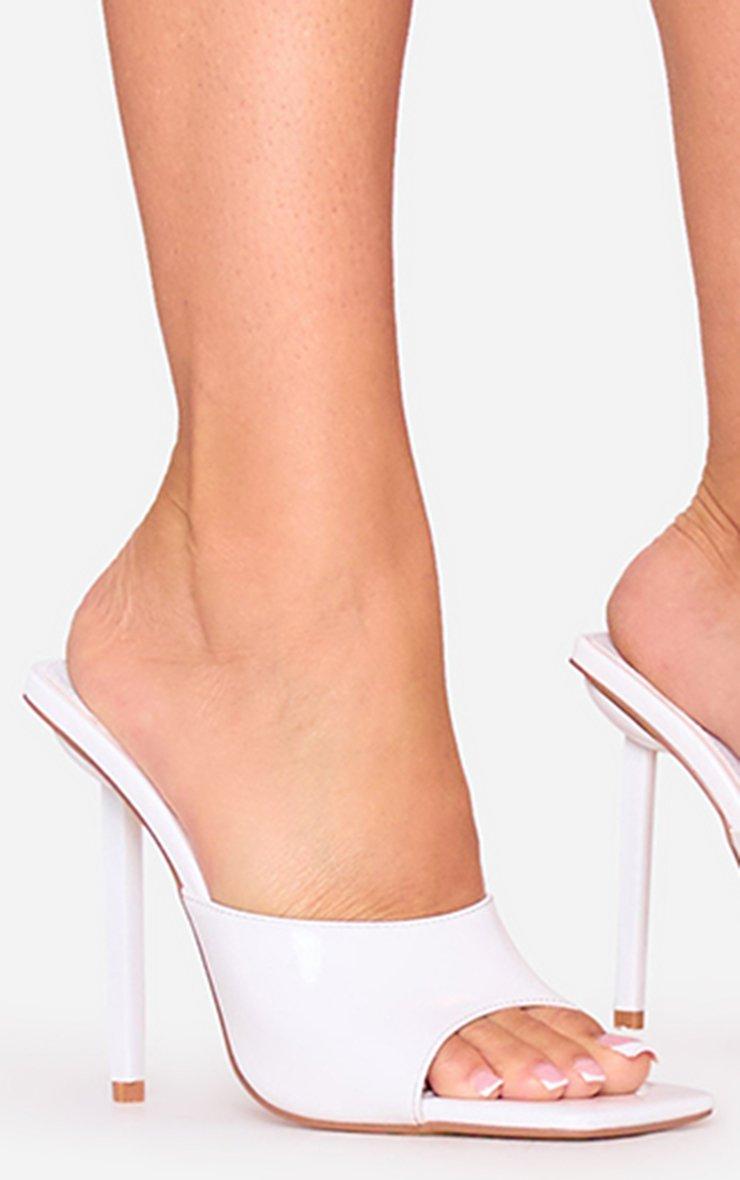Pin-Needle Square Peep Toe Stiletto Heel Mule In White Patent