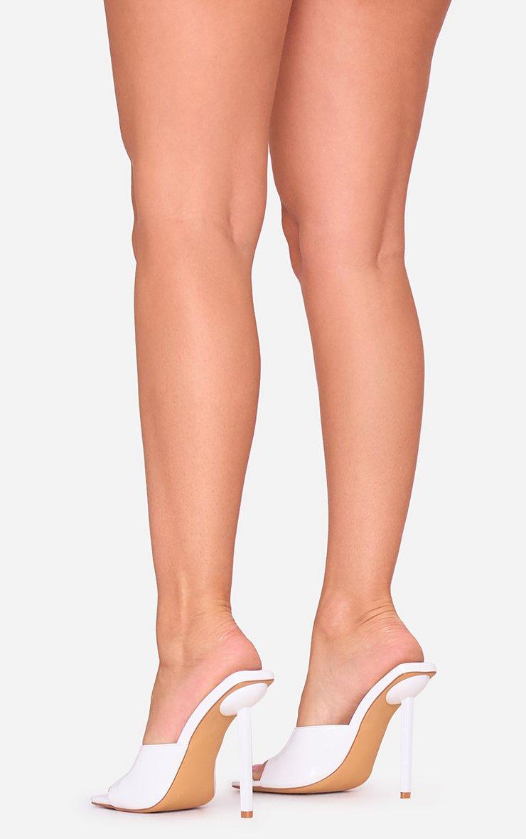 Estella Pointed Peep Toe Heel Mule In White Patent