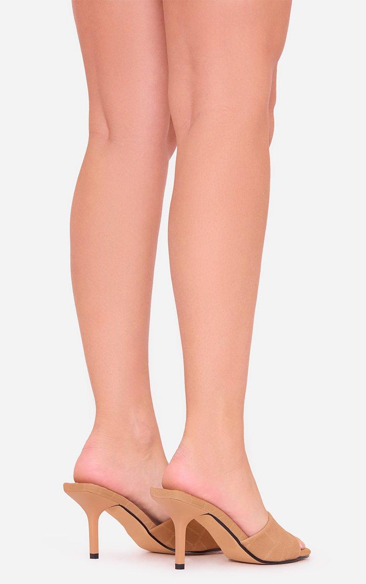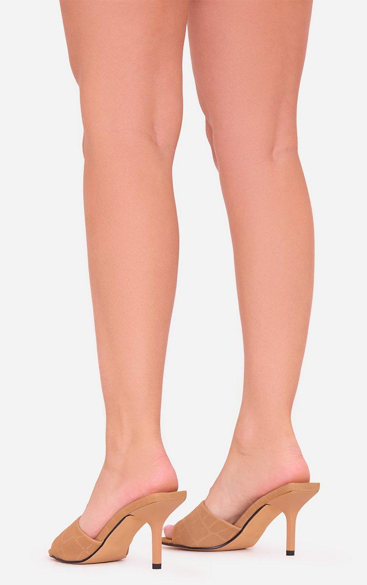 Esmecc Square Peep Toe Heel Mule In Tan Brown Croc Print Faux Suede