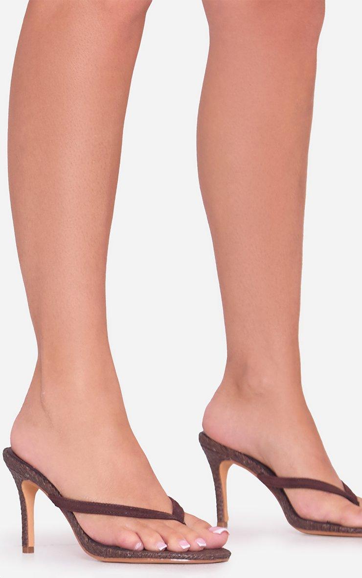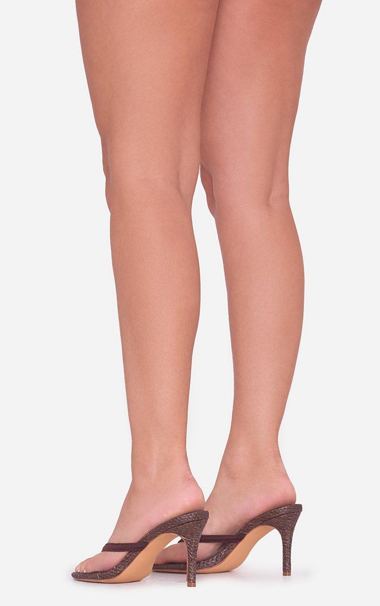 Flex-Appeal Thong Strap Heel Mule In Brown Woven