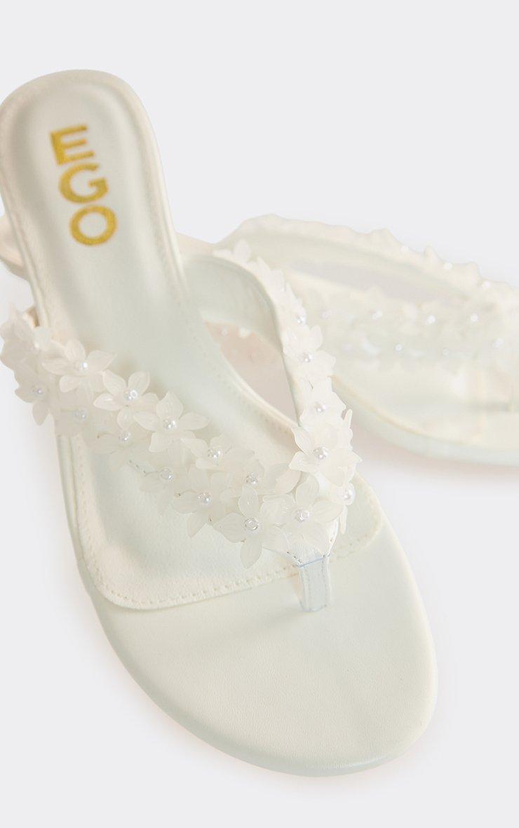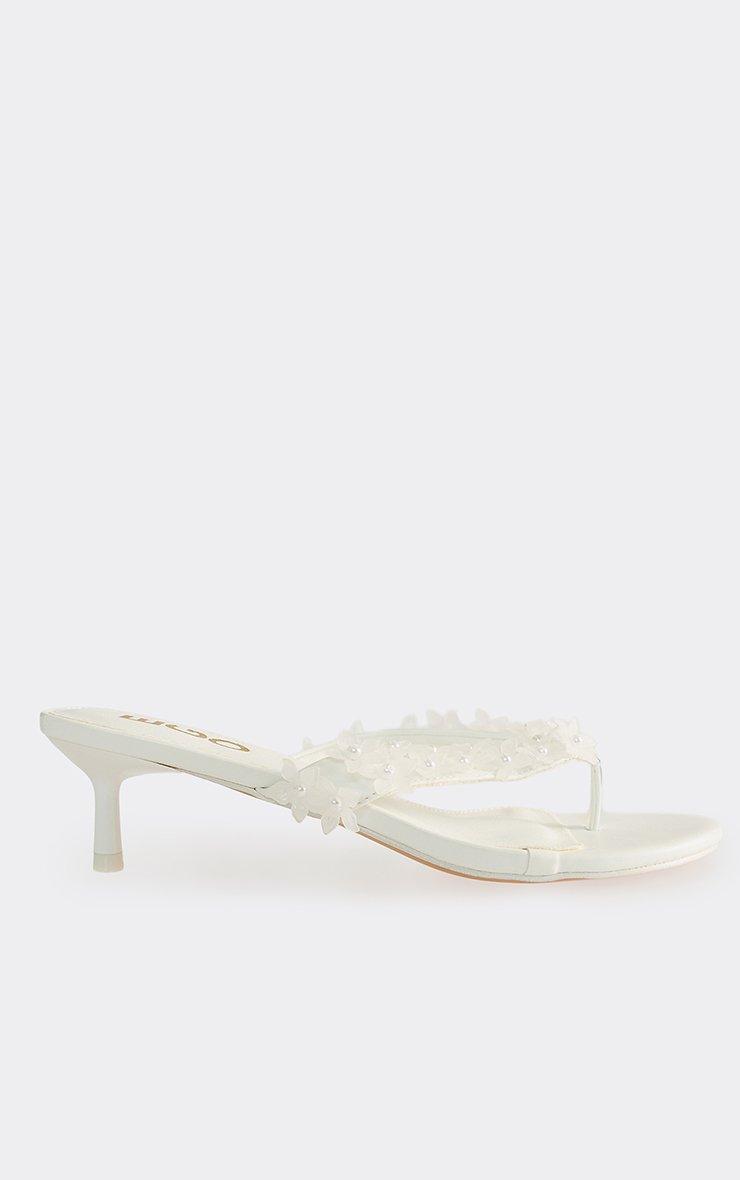 Palisades Flower Detail Thong Strap Kitten Heel Mule In White Faux Leather