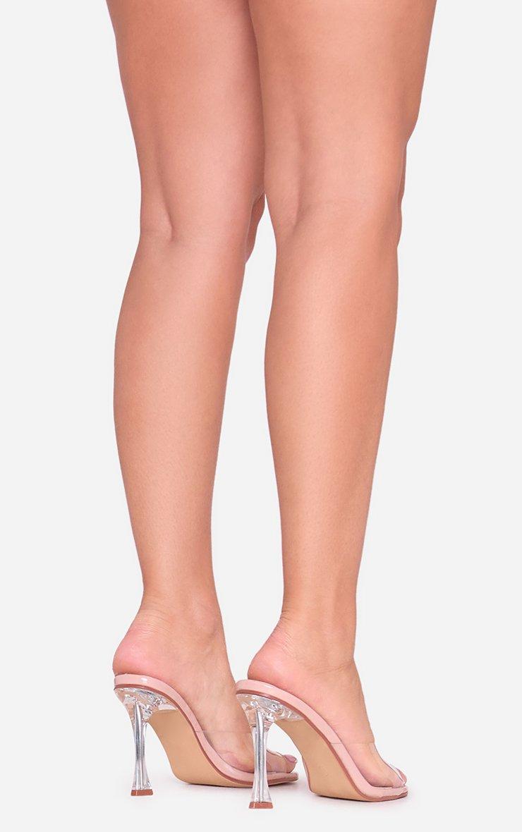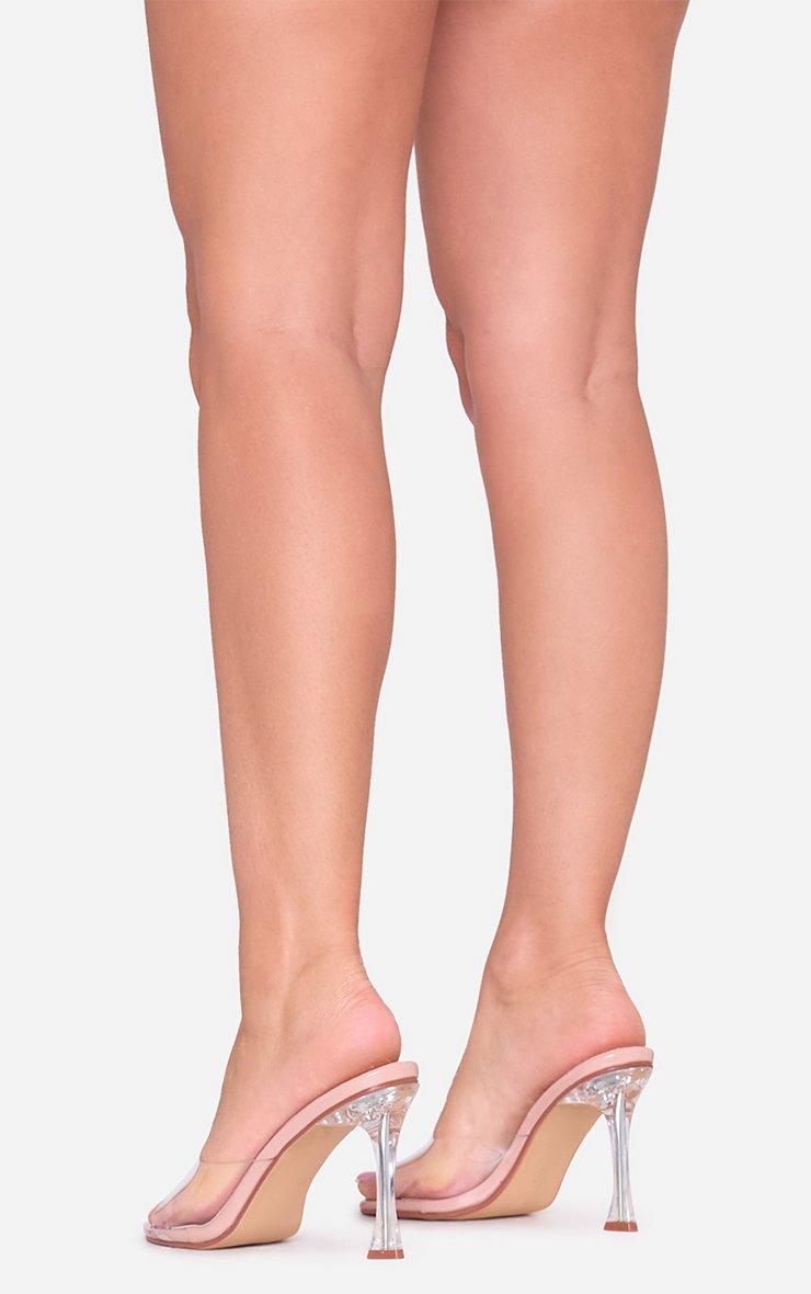 Kayy Clear Perspex Strap Square Peep Toe Heel Mule In Nude Faux Leather