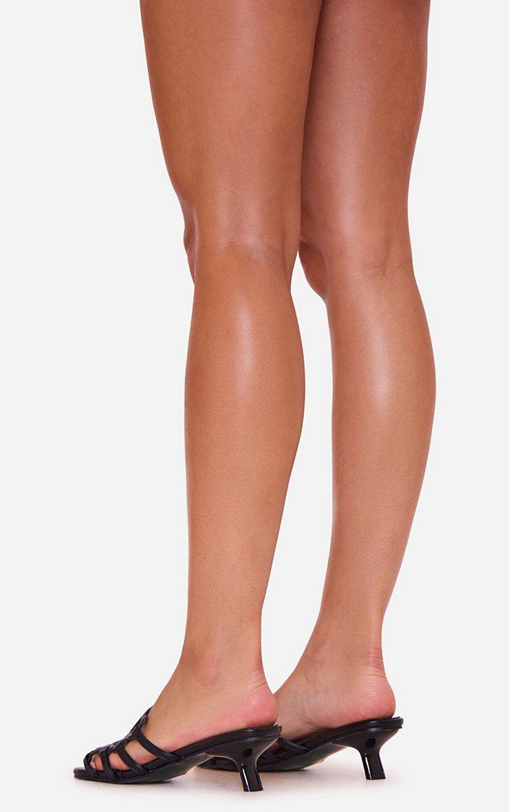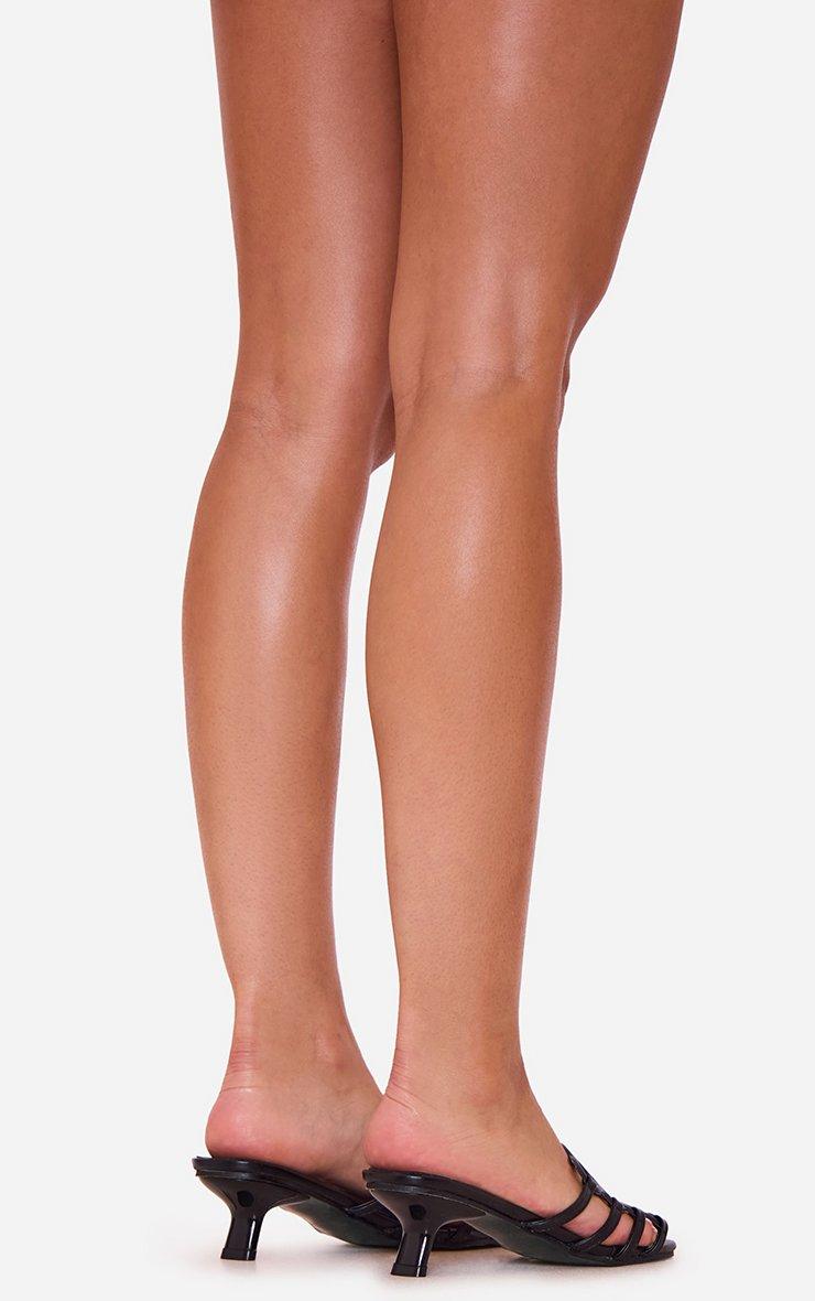 Eve Square Toe Strappy Heel In Black Faux Leather